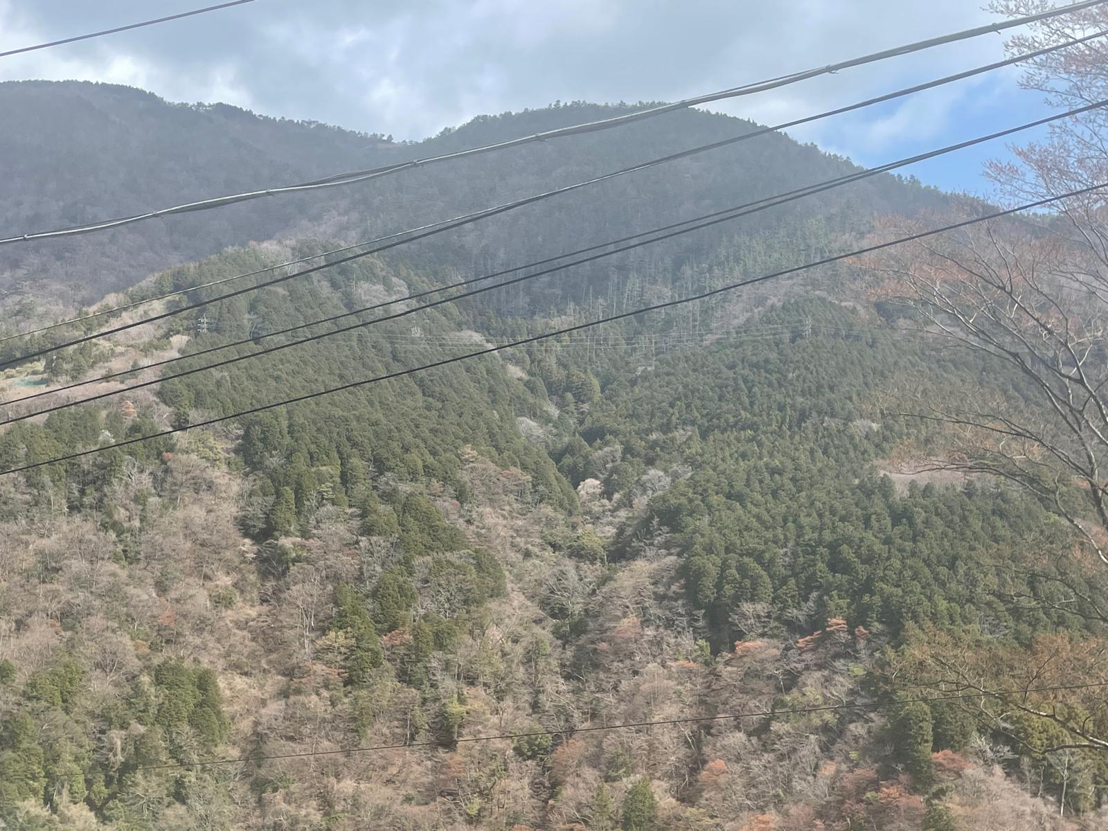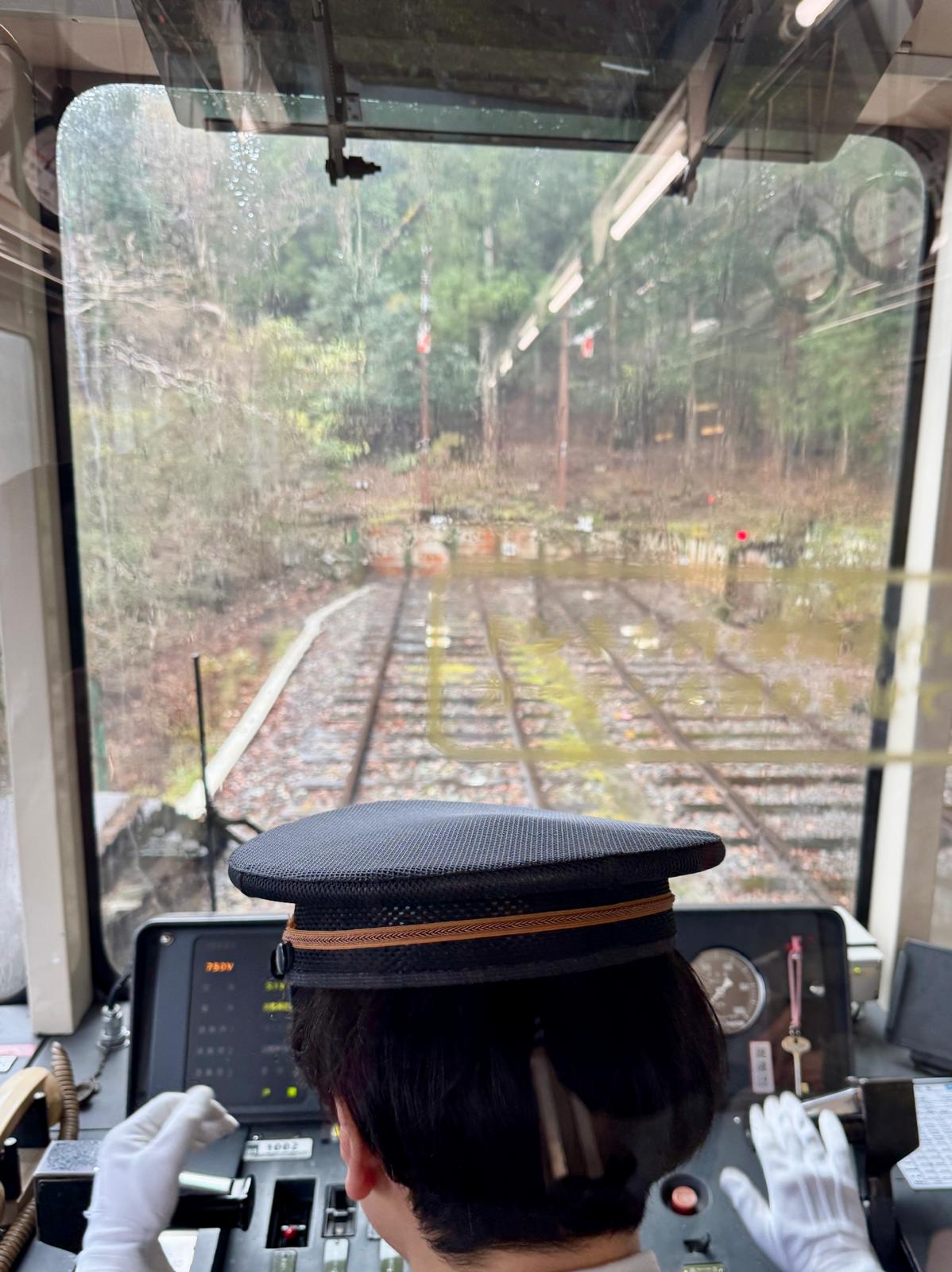 Die Anfahrt ist spektakulär. Von Kyoto erstmal mit dem Shinkansen, dann einer Regionalbahn und am Ende die Bergbahn. Die kraxelt den Berg hoch und immer, wenn es sehr steile wird in Serpentinen. Das heißt der Zug fährt in ein Gleisende, trifft sich dort mit dem Gegenzug und fährt in umgekehrter Richtung weiter rauf bzw. runter.