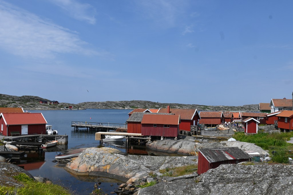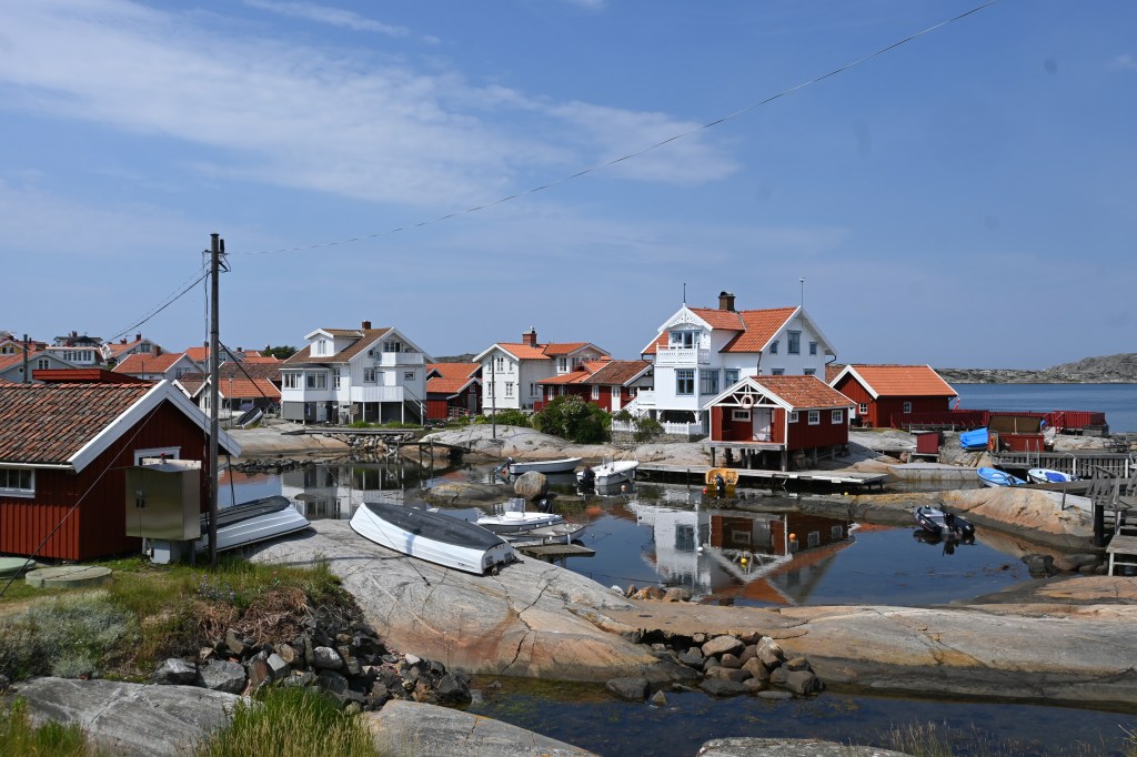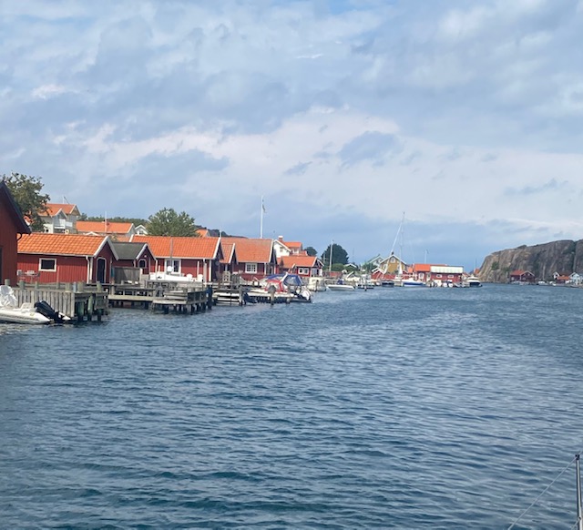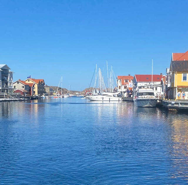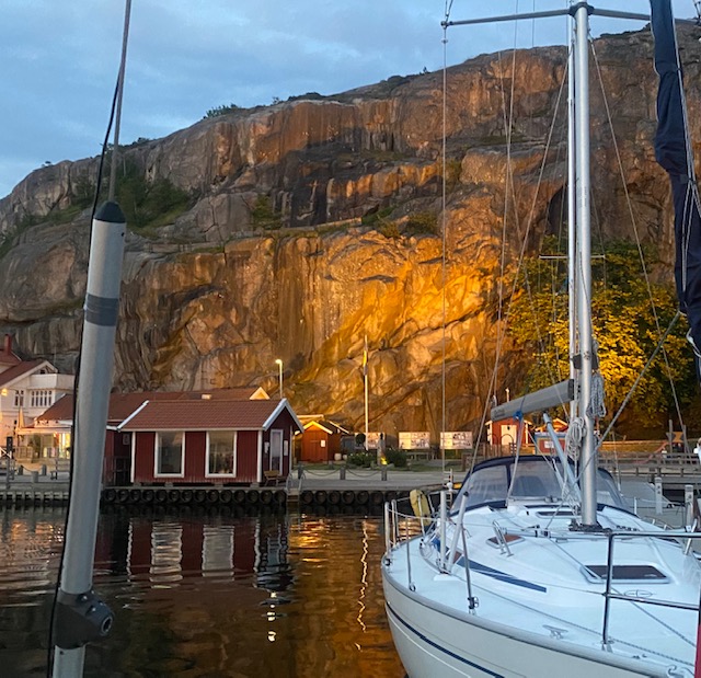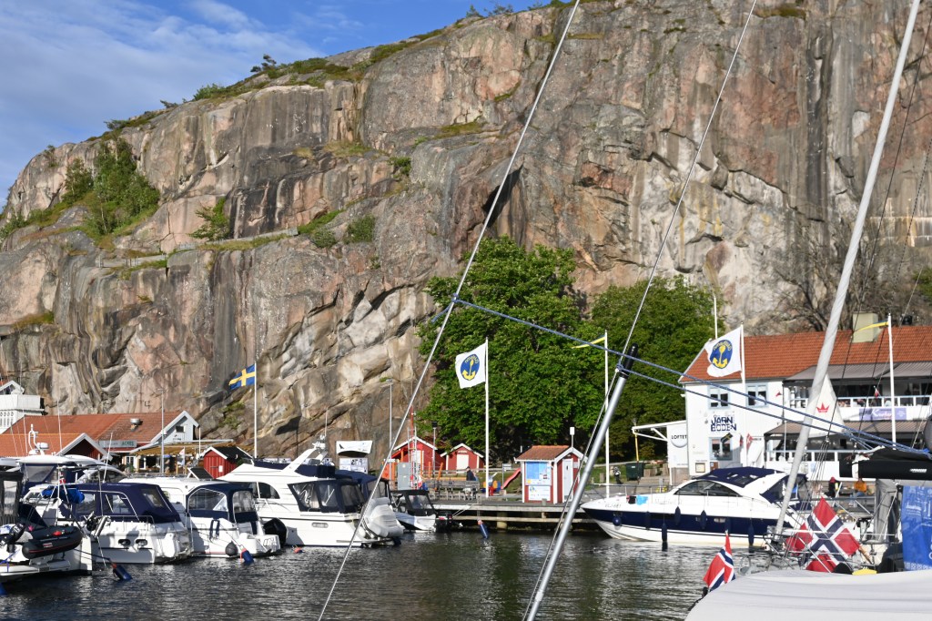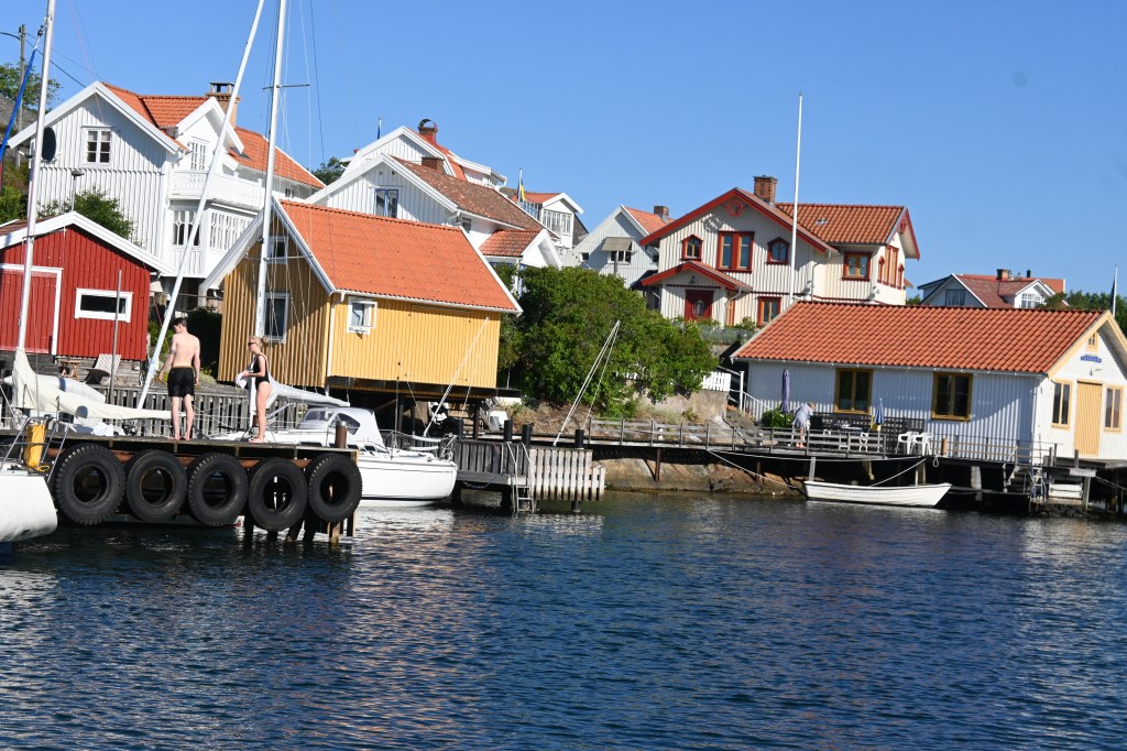 Es ist eine Insel vor einer Insel, die vor einer Insel liegt. Das Mekka der schwedischen Segler. Hier wie Kiel bei uns, nur kleiner, hübscher und teurer. Pelle Petterson, die Segellegende und Ute’s Lieblingsdesigner (inzwischen ist es seine Tochter) hat hier seine Karriere gestartet. Es ist inzwischen ein Luxus-Urlaubsort für die Göteborger.