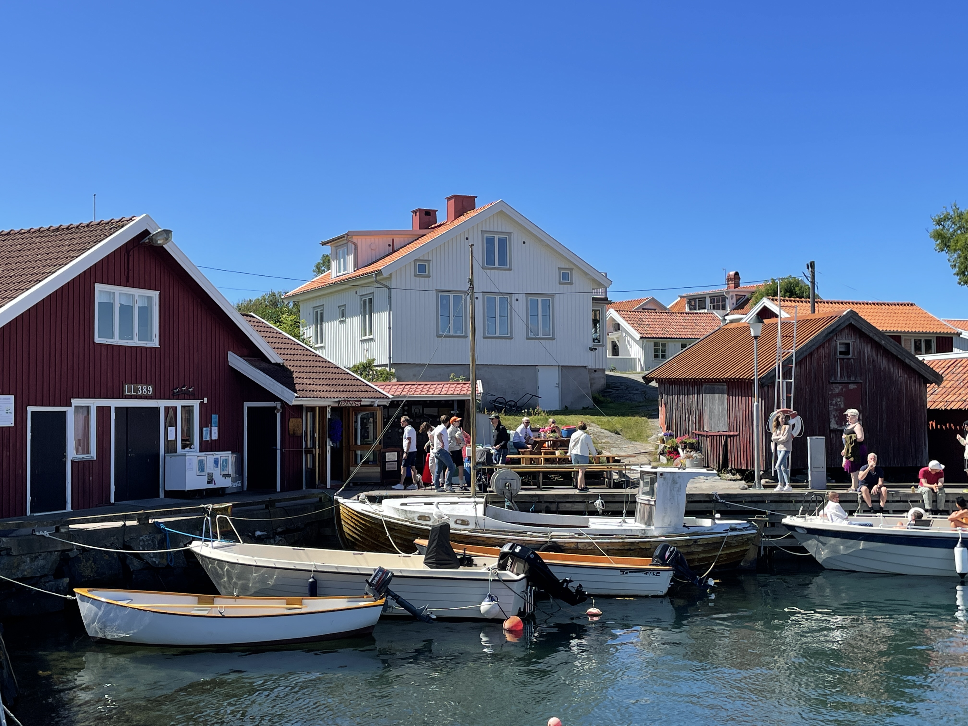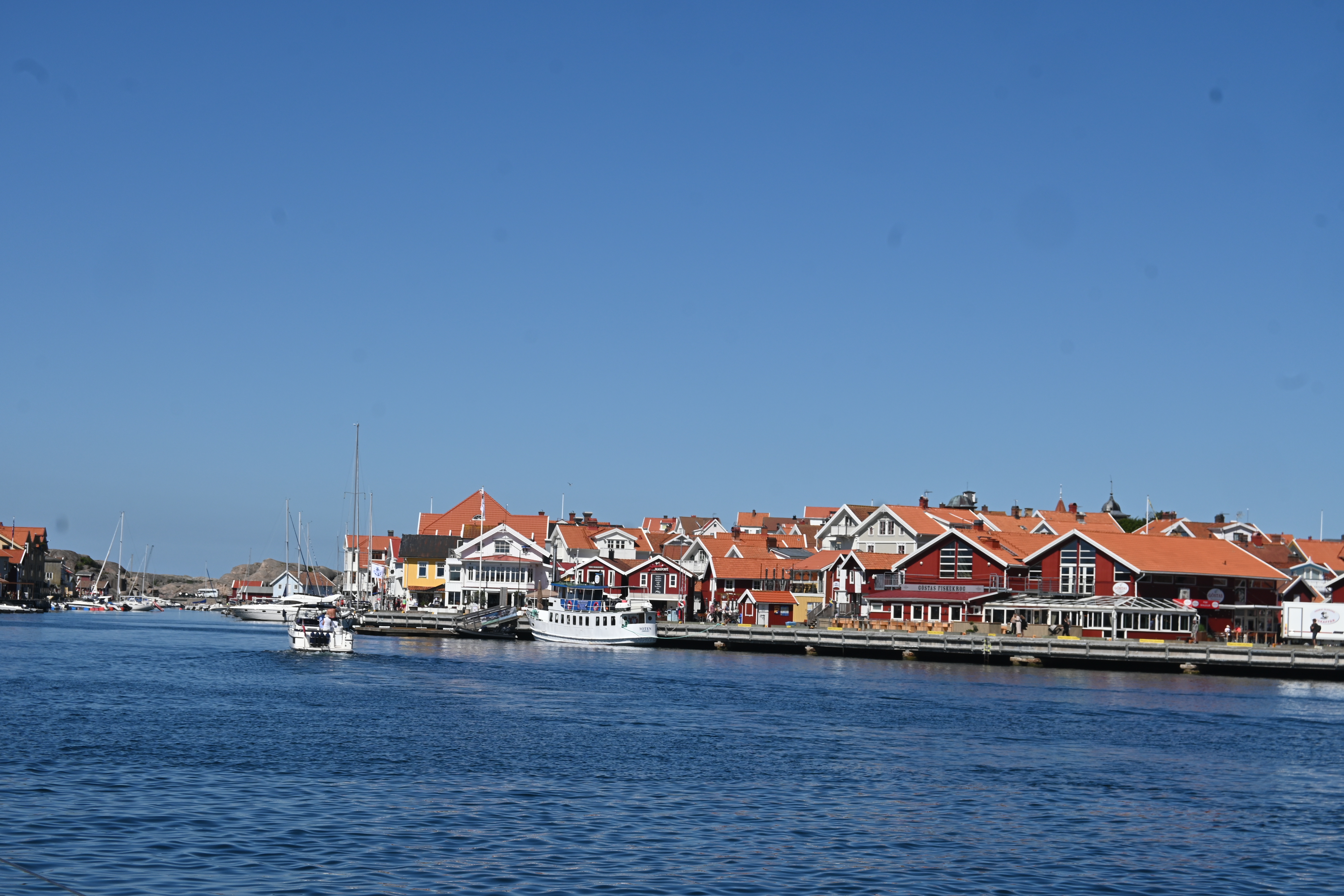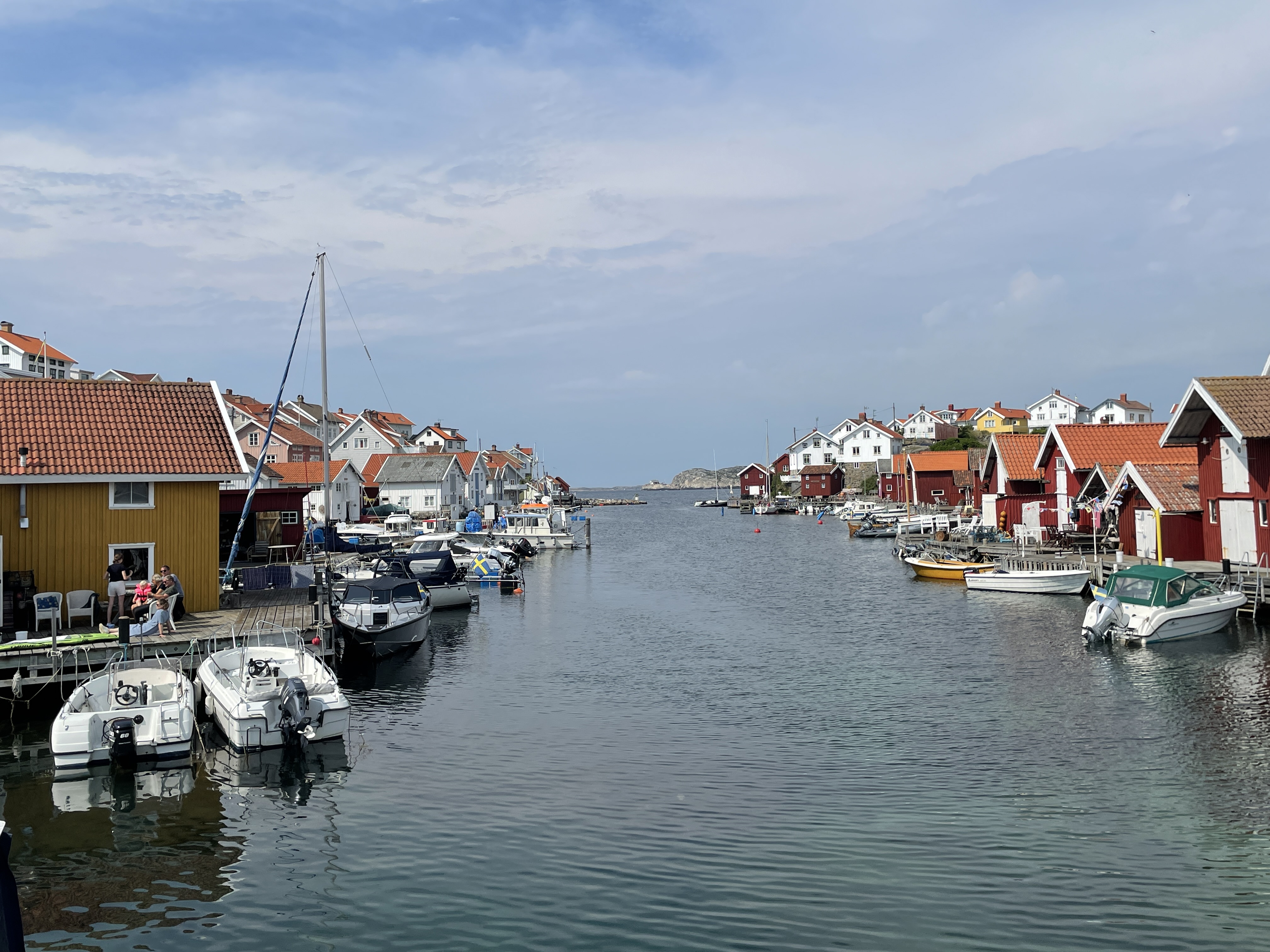 Es ist eine Insel vor einer Insel, die vor einer Insel liegt. Das Mekka der schwedischen Segler. Hier wie Kiel bei uns, nur kleiner, hübscher und teurer. Pelle Petterson, die Segellegende und Ute’s Lieblingsdesigner (inzwischen ist es seine Tochter) hat hier seine Karriere gestartet. Es ist inzwischen ein Luxus-Urlaubsort für die Göteborger.