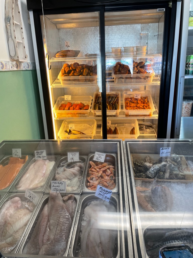 Helsingör ist recht schön. Voll von schwedischen Tagestouristen, die mit zwei großen Fähren in wenigen Minuten rüber kommen. Für uns ist die umgebaute Werfthalle mit Streetfood aus der ganzen Welt ein Erlebnis. Wir haben uns für Fish & Chips entschieden- war echt lecker.