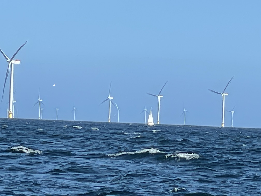 Von Grenaa aus wird der mittelgroße Windpark bedient, der zwischen dem Festland und Anholt liegt. Offensichtlich ist es erlaubt dort durch zu segeln.