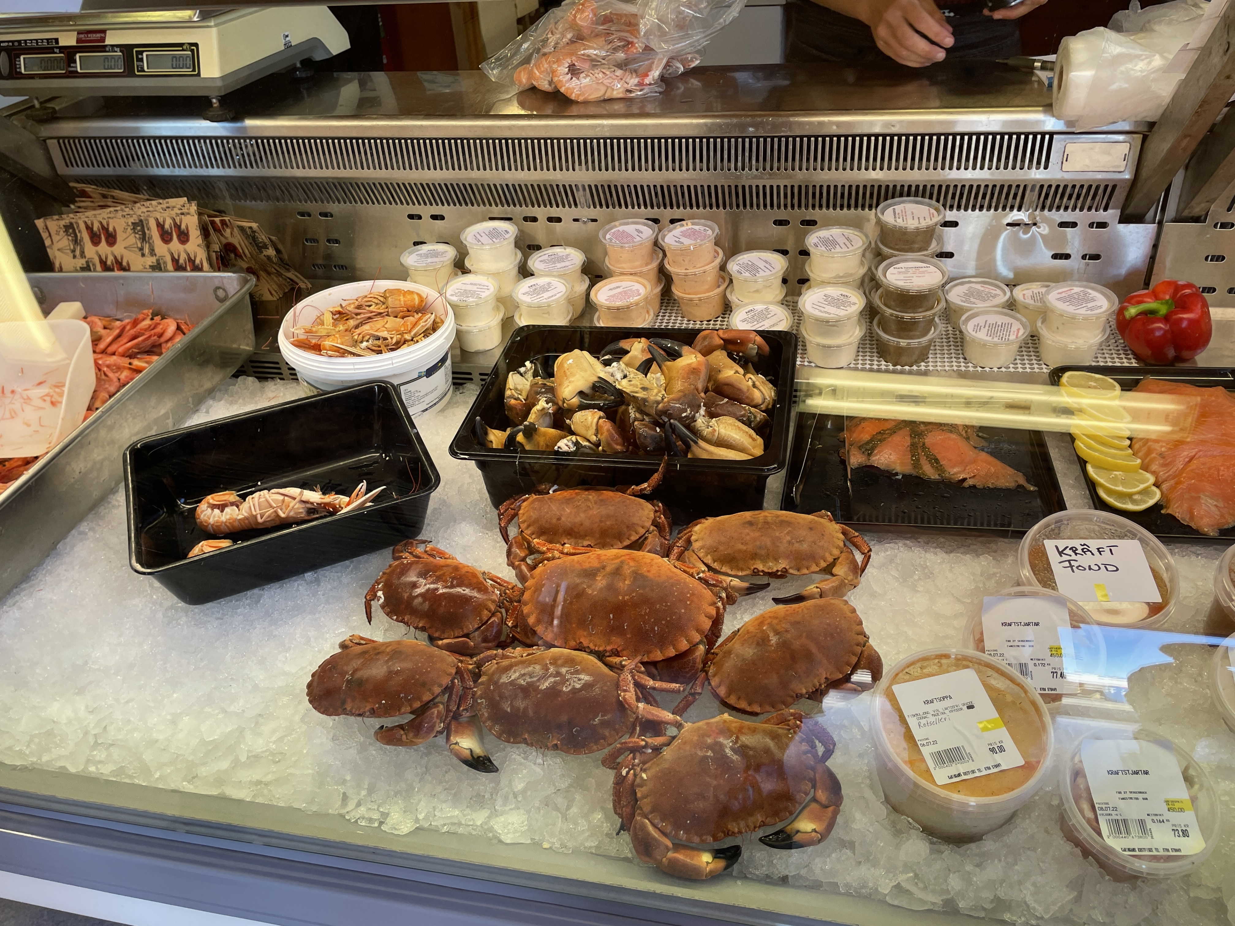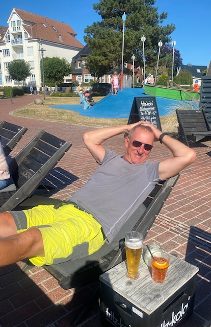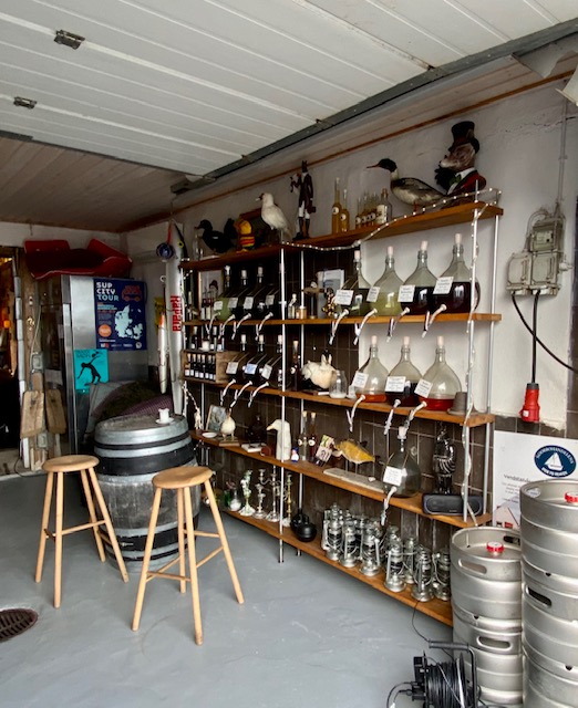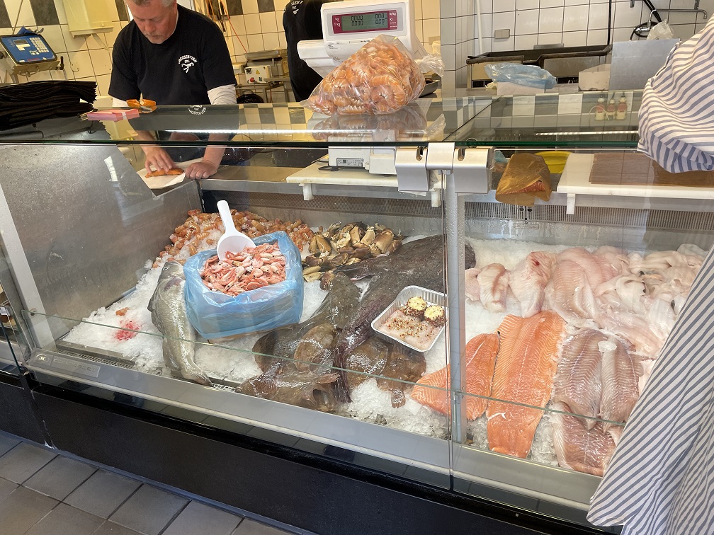In einer der beiden Outdoor Kneipen trinken wir unser Anleger-Bier und kaufen frischen Fisch. Lachs, den wird es am Abend zusammen mit grünem Spargel und Pasta geben. Marcus sein Lieblingsgericht.