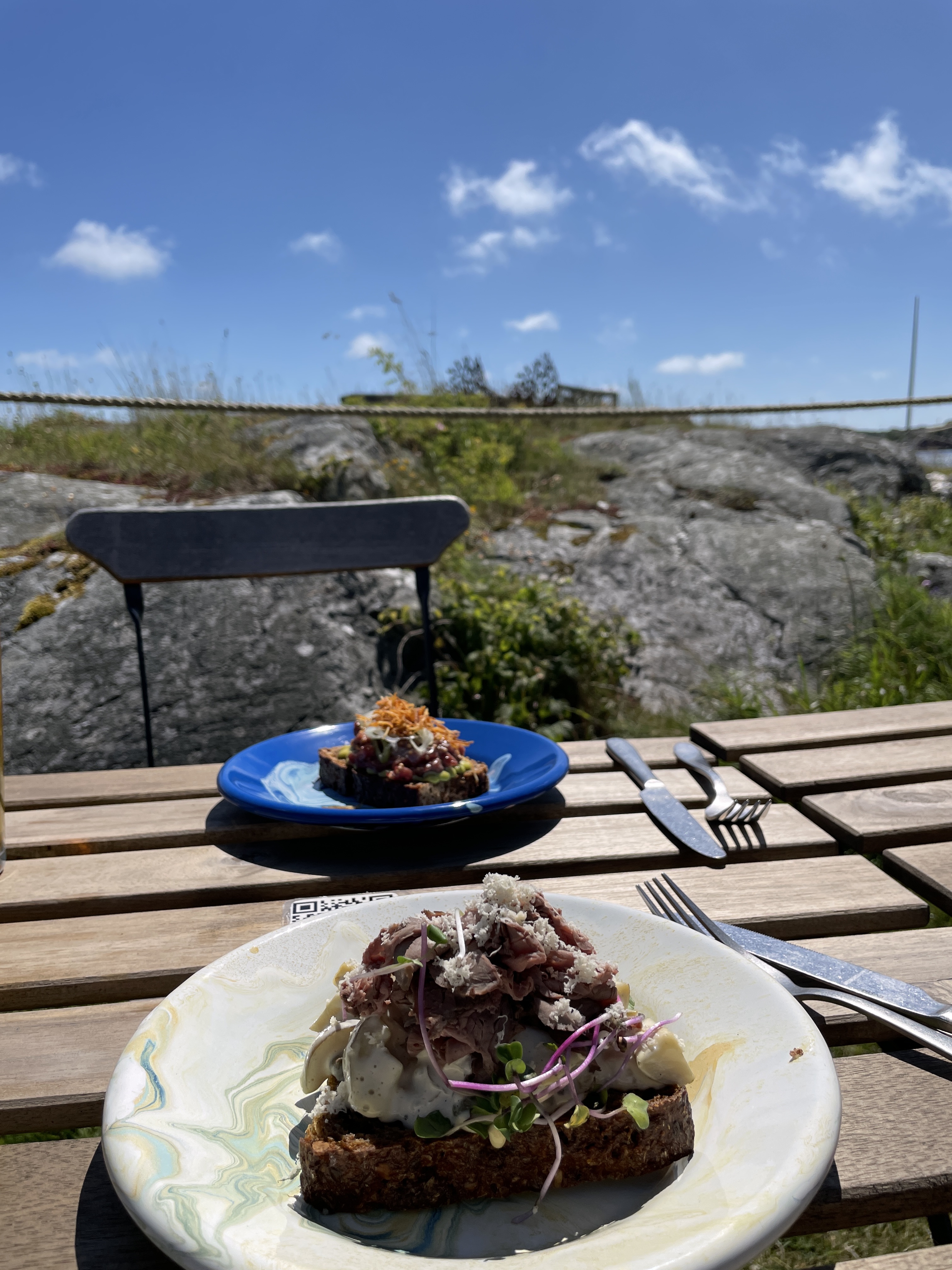Leider hat das Restaurant nur am Wochenende geöffnet und die Pop-Up Pizzeria startet wohl erst Freitag, also müssen wir selbst kochen, denn am Donnerstag haben wir uns vorsichtshalber über Mid-Summer einen Platz 7 SM weiter nördlich gebucht, in Skärhamn.