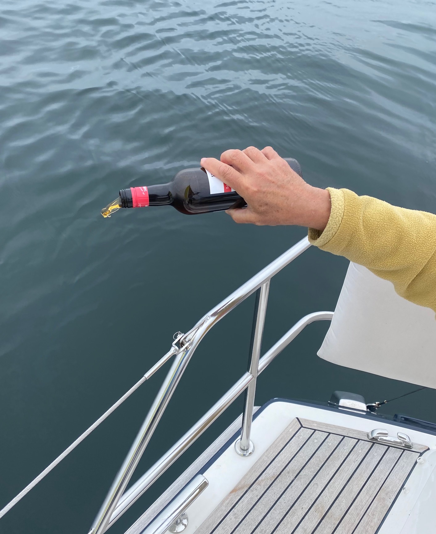 Wir nehmen uns vor zu der kleinen Insel Strynö zu segeln. Am Anfang geht es aber gar nicht voran: 1-3 Knoten bedeuten eine ETA von 23.00h. Geht gar nicht. Ute hat aber die Rettung, wir haben den Göttern von Wind und Meer „Rasmus“ und „Neptun“ noch gar kein Opfer gebracht. Also bekommet jeder ein Schluck Sherry! Der Skipper darf natürlich auch nicht zu kurz kommen. Keine zwei Minuten später brist der Wind auf und wir kommen gut voran. Von wegen Aberglaube.