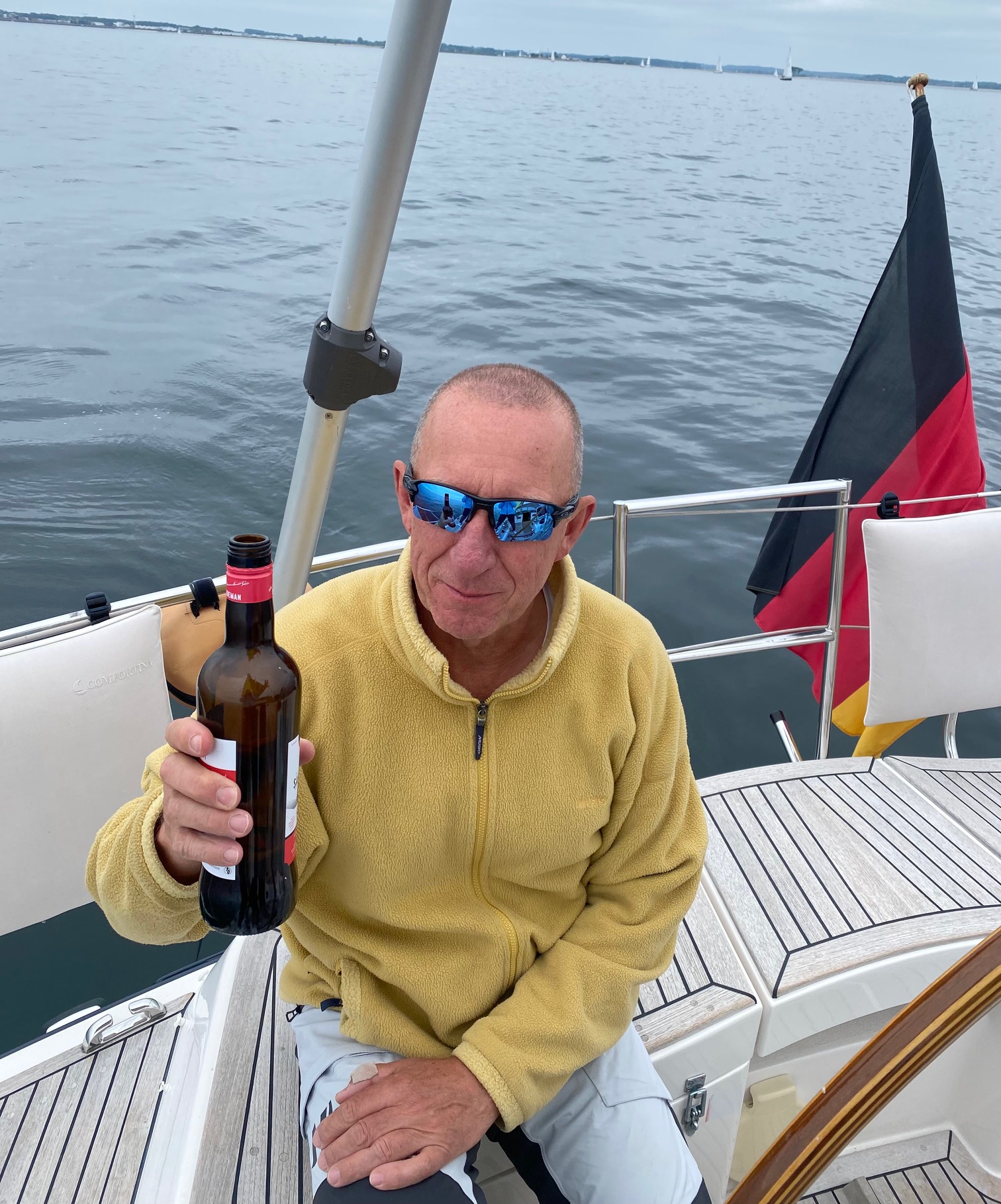 Der gestrige Schluck Sherry für Rasmus hat noch für heute gereicht. Schönster Wind aus Osten, meistens hoch am Wind, aber genau richtig. Den ganzen Tag herrliche Sonne und 22 Grad Temperatur. Marcus ist erstmalig in diesem Jahr den ganzen Tag in Shorts, so kann es bleiben. Damit euer Neid nicht zu groß wird, morgen soll es etwas regnen.