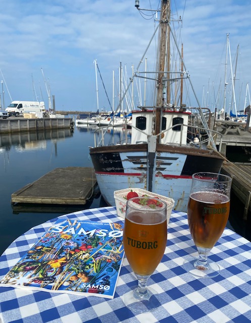 Am frühen Nachmittag sind wir in Ballen, für uns der schönste von den drei Häfen auf Samsö. Der ist in das Dorf und die Natur eingepasst und leicht chaotisch, zumindest in der Hochsaison, wenn sich die Boote stapeln. Jetzt ist aber Vorsaison und alles entspannt. Alles ist schön hier, sogar der Tourismusführer ist gut geschrieben und gestaltet. Samsö ist der Inbegriff von „hygge“.