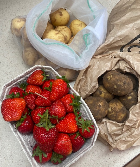 Am zweiten Tag machen wir die Samsö Einkäufe, d.h. wir fahren mit dem Rad über die Insel und kaufen am Straßenrand frisches Obst, Gemüse und Kräuter. Besonders lecker sind die „Nye Kartoffler“, die brauchen wir in ausreichender Menge für die nächsten Tage.