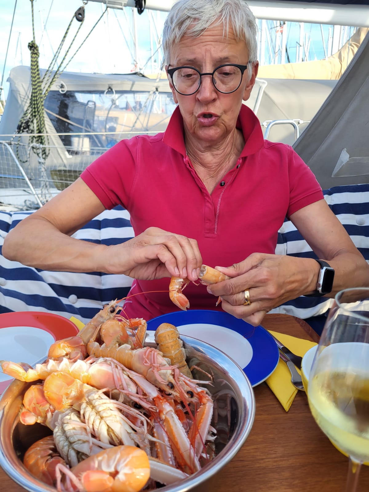 Es ist Mittwoch, die arbeitende Bevölkerung ist noch nicht wieder in unserer Marina. Aber ab Donnerstag trudeln die ersten Urlauber wieder ein, wir gehen zusammen mit der SY Silberblick essen, laden SY Gemini zum Essen ein und später kommt die Crew der MS Adeja auf einen Drink vorbei. Ach, ist es schön mal wieder mit allen zu quatschen. Was machen bloß die Leute, die wochenlang den Pazifik durchsegeln. Das wäre nichts für uns.