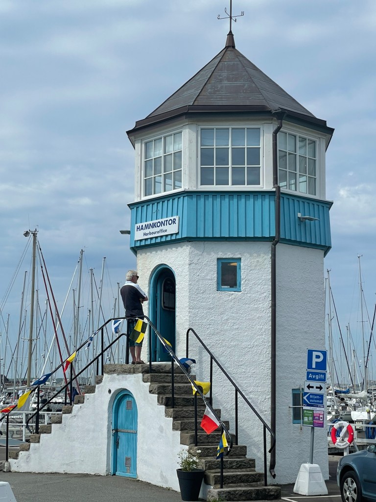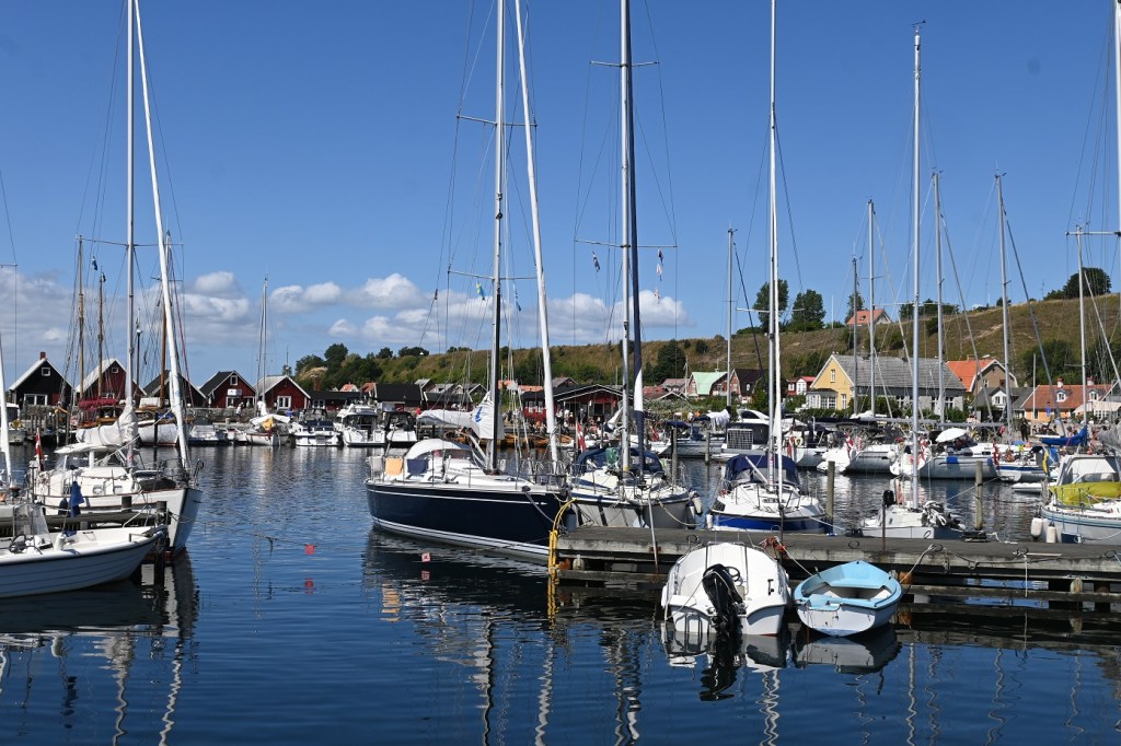 Wir starten um 10 Uhr und haben einen herrlichen Segeltörn. Lassen ein einsames Lotsenhaus und die letzte schwedische Schäre hinter uns. Bei mittlerem Wind aus nördlichen Richtungen sind wir recht schnell und um 14.30 Uhr auf der Insel. Und wir wussten es – es ist knalle voll. Es gibt in Osterby sowieso nur wenige Boxenplätze und so landen wir im Päckchen und sind Nr. 6.
