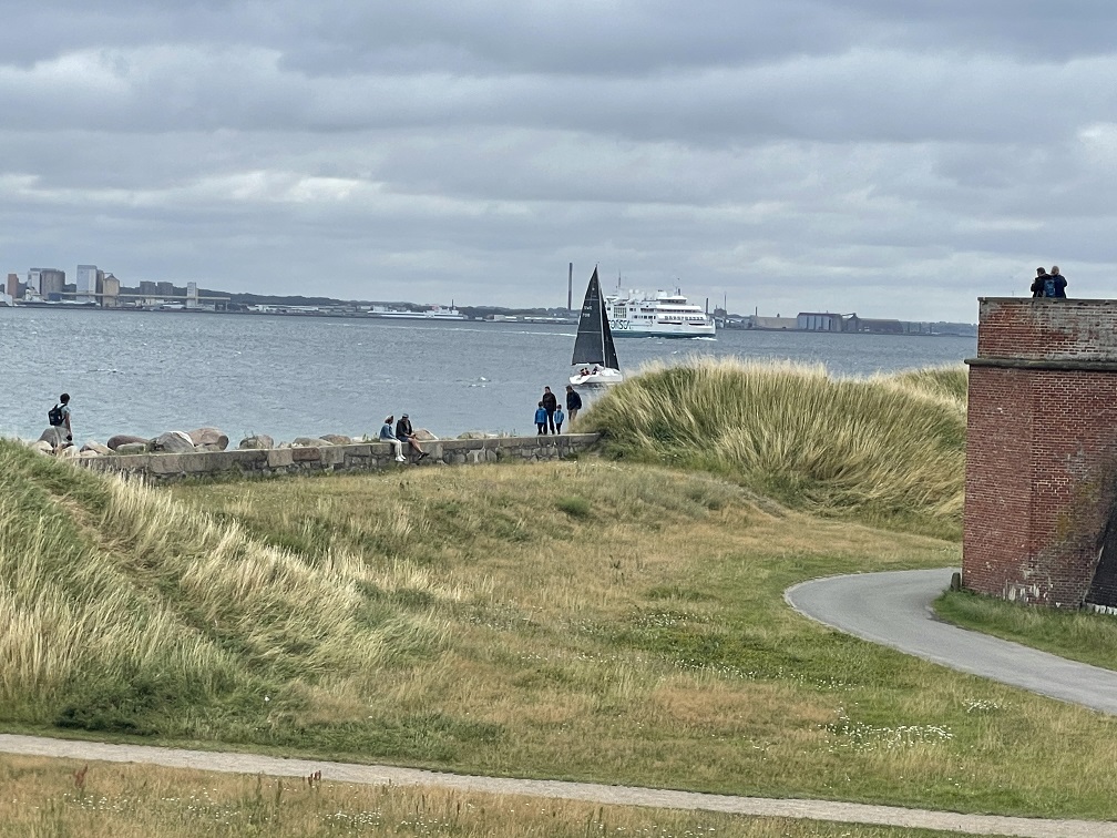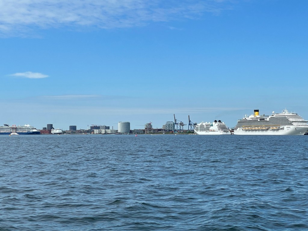 Wir haben ein Fenster von 2-3 Tagen mit passenden Winden vor uns, die wollen wir nutzen. Am ersten Tag geht es nach Dragör, ein Vorort von Kopenhagen. Es war ein kurzer Schlag von 20 S M. Wir können gut durch den Öresund segeln, allerdings mit 1 – 1,5 Kn Strom gegen an. Wir passieren den Terminal für die diversen Fähren und den Flughafen.