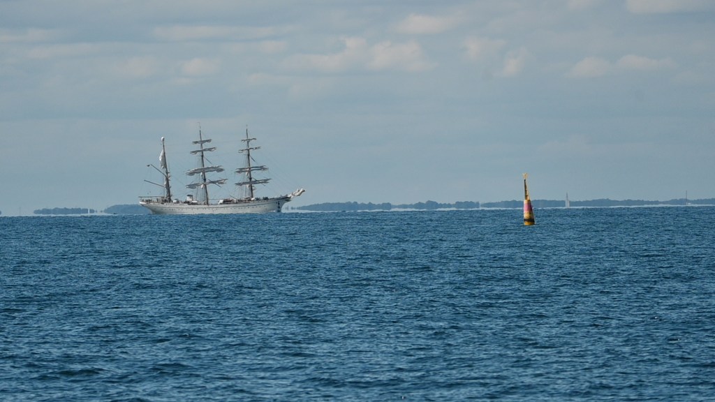 Noch nie haben wir so viele Kriegsschiffe in der Ostsee gesehen wie in diesem Jahr. Alle sind ganz aufgeregt. Vor dem Marinestützpunkt Eckernförde kreuzen einige Schiffe und kalibrieren die Kompasse, damit sie wissen wo Osten ist.