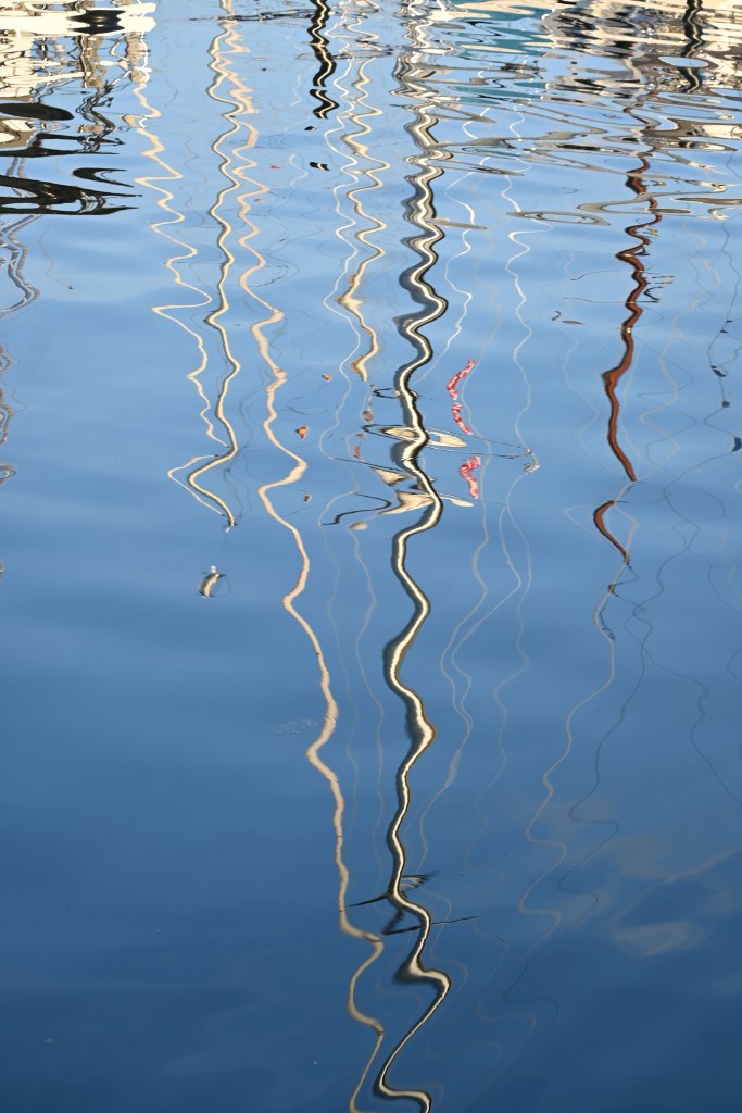 Und, wir haben einen sehr guten Platz im Hafen. Nur einmal werden wir zugeparkt, aber sonst haben wir immer freie Sicht und genießen das alltägliche Hafenkino.
