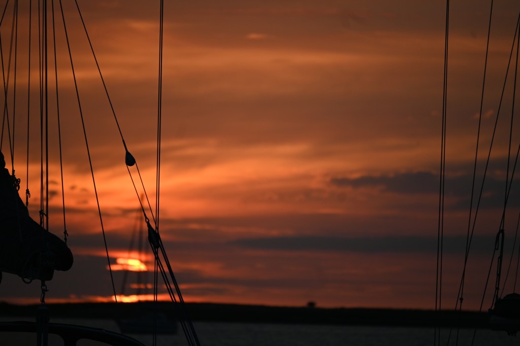 Und dann gab es noch ein Training des örtlichen Segelclubs. Es ist Tradition eine Regatta einmal die Woche zu segeln, die sog. „Mittwochsregatta“, aber heute ist Dienstag.
