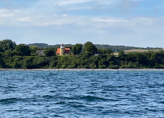 Am nächsten Morgen steht der letzte Stepp an, 22 SM unter Code-Zero – schönstes Kaffeesegeln nach Maasholm. Vorbei an unserem schönen weiß-grünen Leuchtturm und der Giftbude, einer kultige Kneipe am Hafen Schleimünde. Das Gebiet ist umgeben vom Naturschutzpark, der nicht betreten werden darf. Folglich kommt man hier nur mit dem Schiff hin.