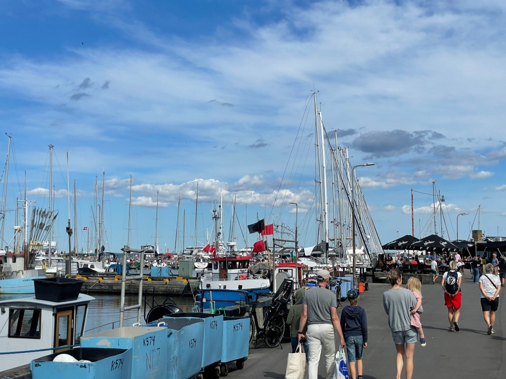 Der Hafen hat sich gemausert in den letzten Jahren. Die Feriensiedlung hat zwar immer noch ihren eher begrenzten Charme, aber eine tolle Gin- und Bierkneipe ist dazugekommen und auf der Fläche des abgebrannten Supermarktes ist ein Outdoor Foodmarket entstanden. Viele internationale Stände, sehr nett. Zwei ganz gute Restaurants gibt es auch noch. Und wenn man Zeit hat, kann man die Natur der Halbinsel Mön genießen, besonders das Mön Klint (das sind die Kreidefelsen, ähnlich wie auf Rügen).