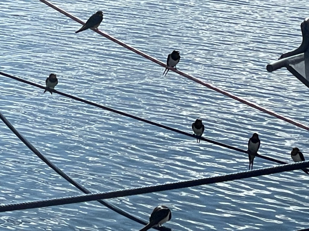 Wir schaukeln mit 2-4 Kn. dahin, langsame Fahrt für die 38 SM, deshalb muss dann doch der Motor für 10 SM helfen. Am Nachmittag kommt dann etwas mehr Wind und gegen 16.00h sind wir im Hafen.