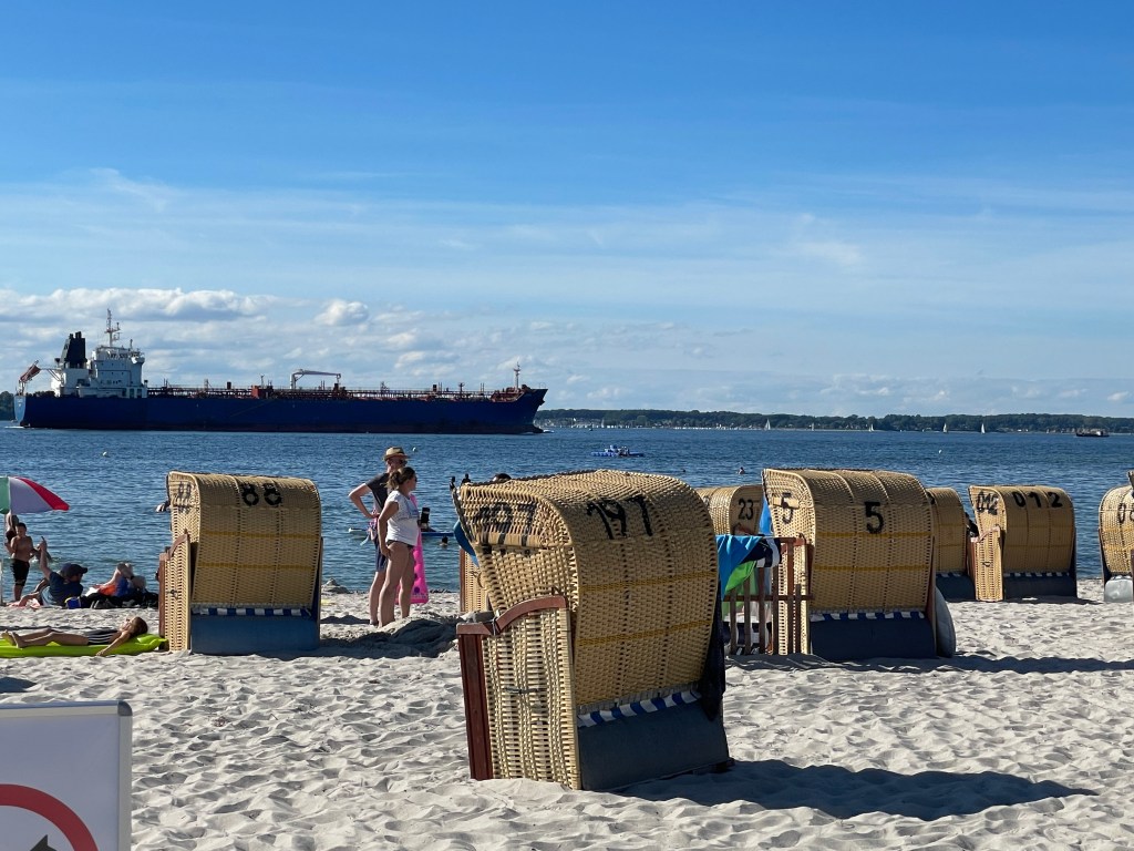 Der Wind ist nur mittel kräftig und wir kommen am Nachmittag in Laboe an. Das liegt vor Kiel und es hat einen schönen Strand mit netter Promenade und guten Restaurants. Dort gehen wir immer Tapas essen, so auch dieses mal.