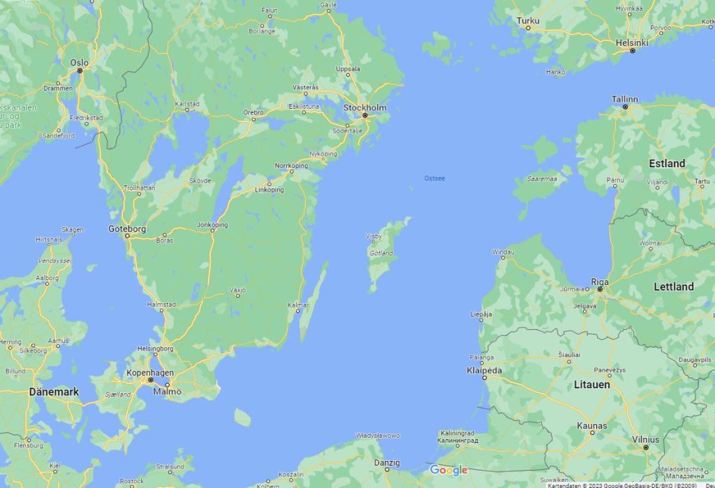 Das erste Etappenziel ist Kalmar, das liegt im Südosten von Schweden und ist exakt 272 SM von Maasholm entfernt. 272 SM x 1,852 = 505 km. Ein trainierter Fußgänger braucht dafür 100 Stunden, ein normaler Fahrradfahrer vielleicht 20-25 Stunden, mit dem Auto schafft man es in 2-3 Stunden. Mit einem Segelschiff …?
