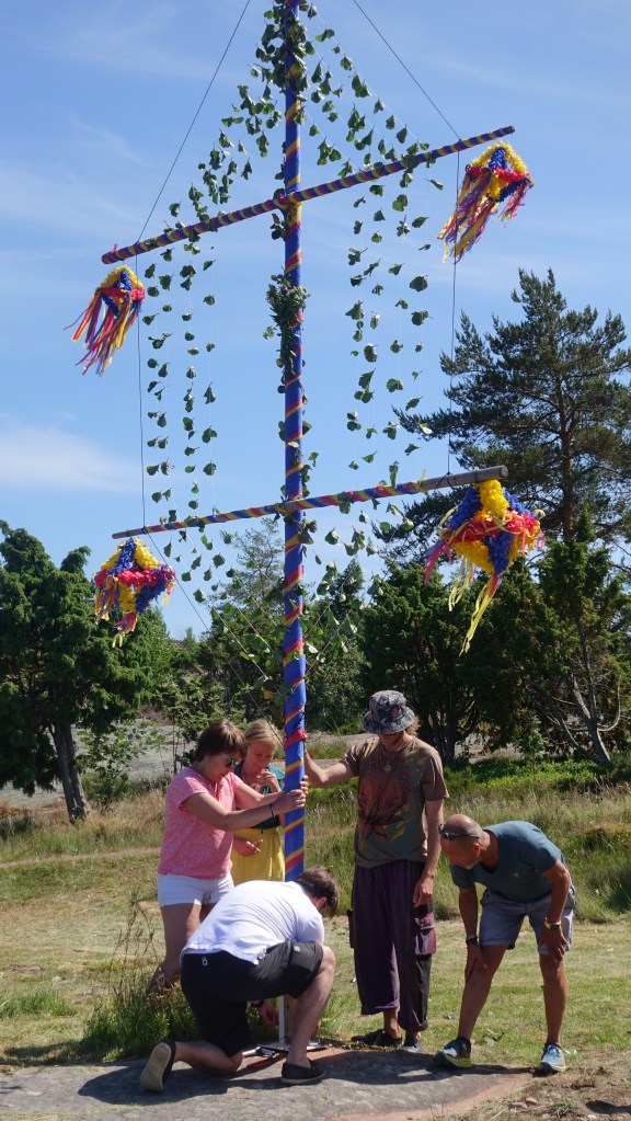 Ansonsten wird auch hier auf den Alands der Baum, um den getanzt wird, für das Midsummer Spektakel vorbereitet. Alands ist eine autonome, militärfreie Zone, gehört politisch zu Finnland und es wird schwedisch gesprochen. Wir machen uns morgen früh auf den Weg zu Ute’s Wunschinsel, Rödhamn.