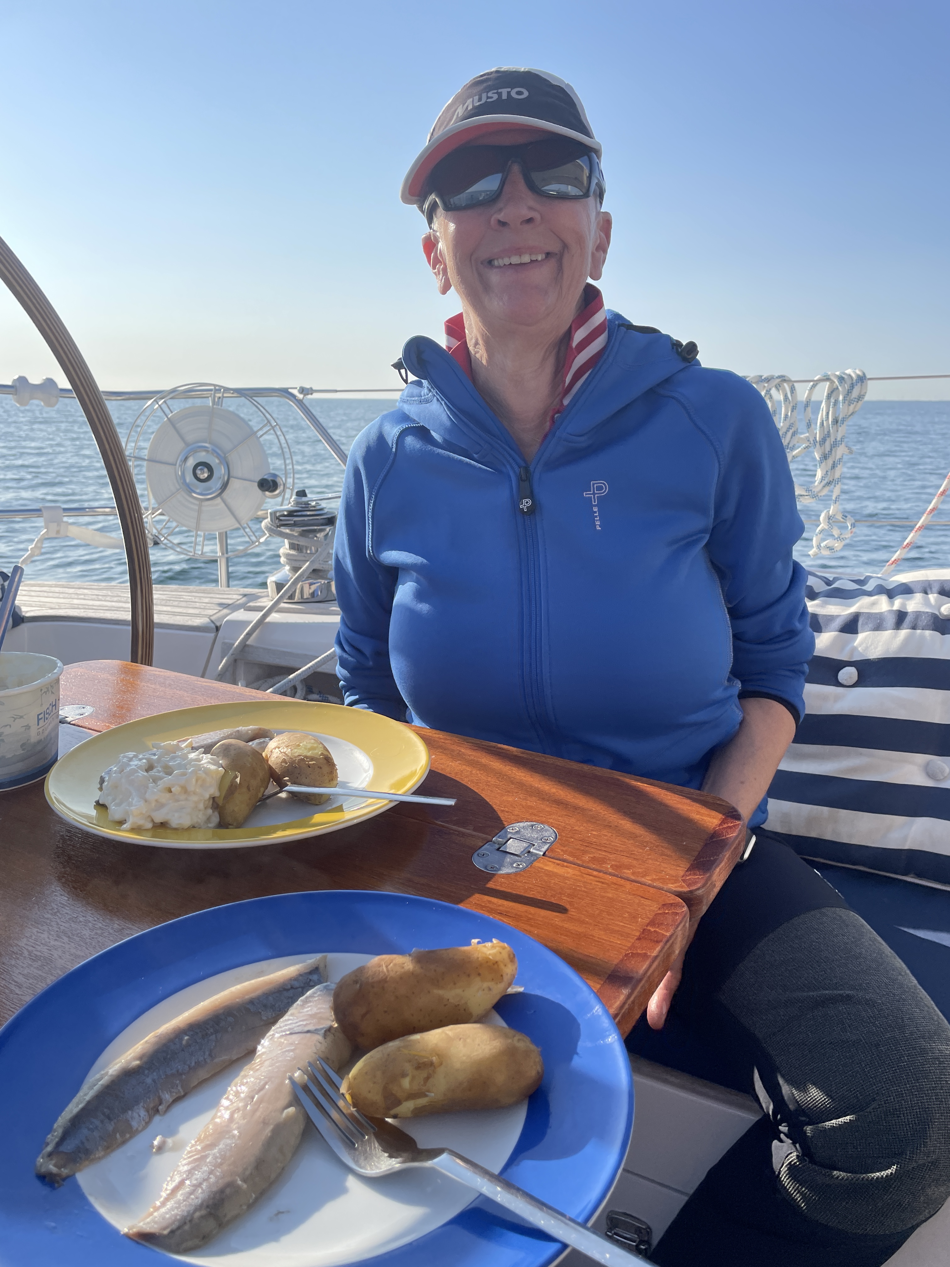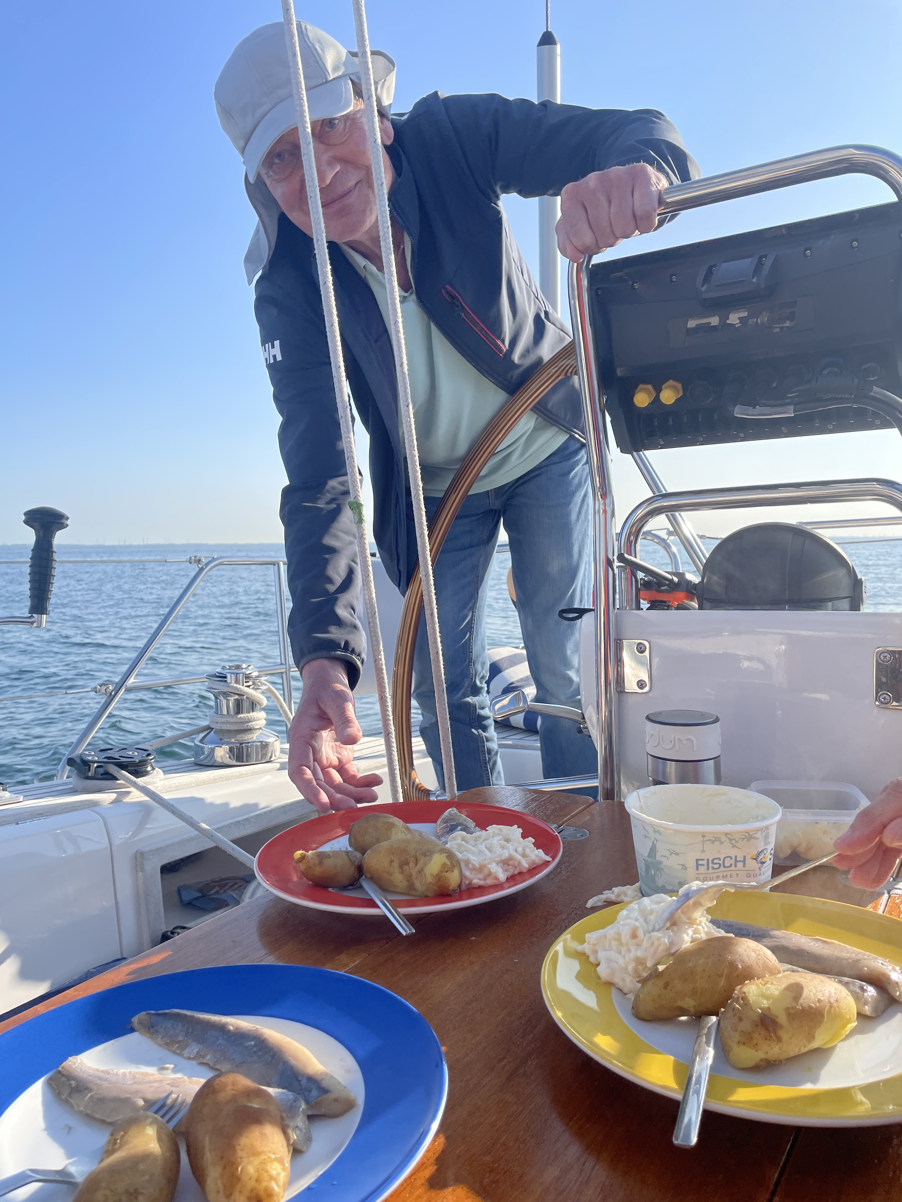 Zum Essen gibt es – einfach zu kochen – stilecht Matjes mit Hausfrauensauce und Kartoffeln. Lecker, aber wir hätten alles gegessen.
