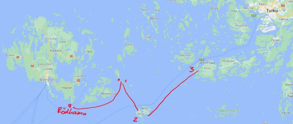 Wir – oder besser gesagt – Ute hat einen Plan für die nächsten Tage. Die Midsummar-Feier wollen wir auf Rödhamn verbringen. Eine kleine Insel, die wir schon bei unserem Baltic Törn 21! besucht haben. Sie ist super schön und liegt etwas westlich von Mariehamn, der Hauptstadt der Alands.
