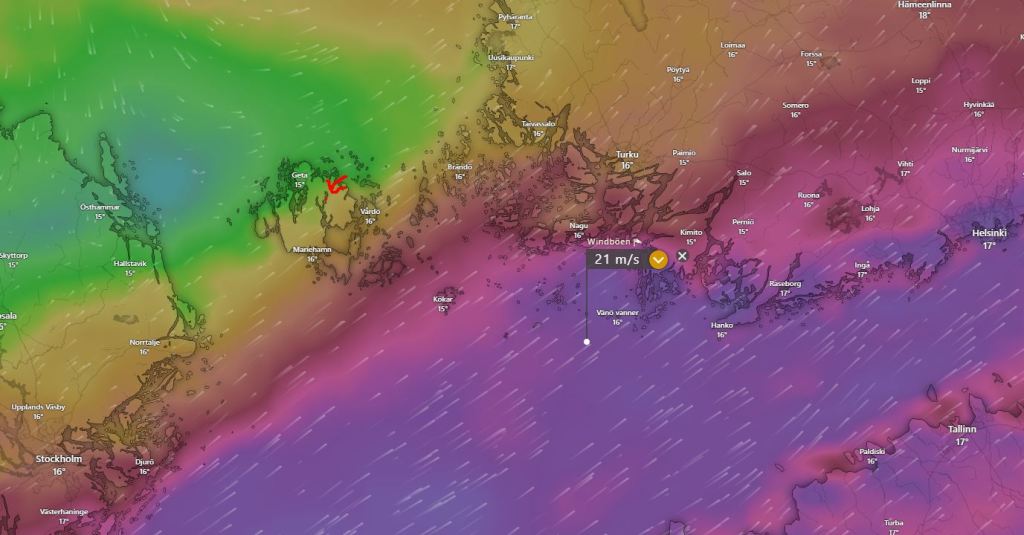 Der Grund, seit Turku kommt der Wind aus Süd-West, mit der Ausnahme, als wir in zweit Tagen von den Alands nach Utö gesegelt sind. Jetzt ändert sich aber gar nichts mehr an der Windrichtung. Es nützt auch nichts, wenn wir einen Tag segeln können, die die nächsten Orte sind nicht so schön, dass wir dort eingeweht sein möchten. Und an den Steinen möchten wir bei viel Wind auch nicht liegen. Wir brauchen schon 2-3 Tage mit passendem Wind.