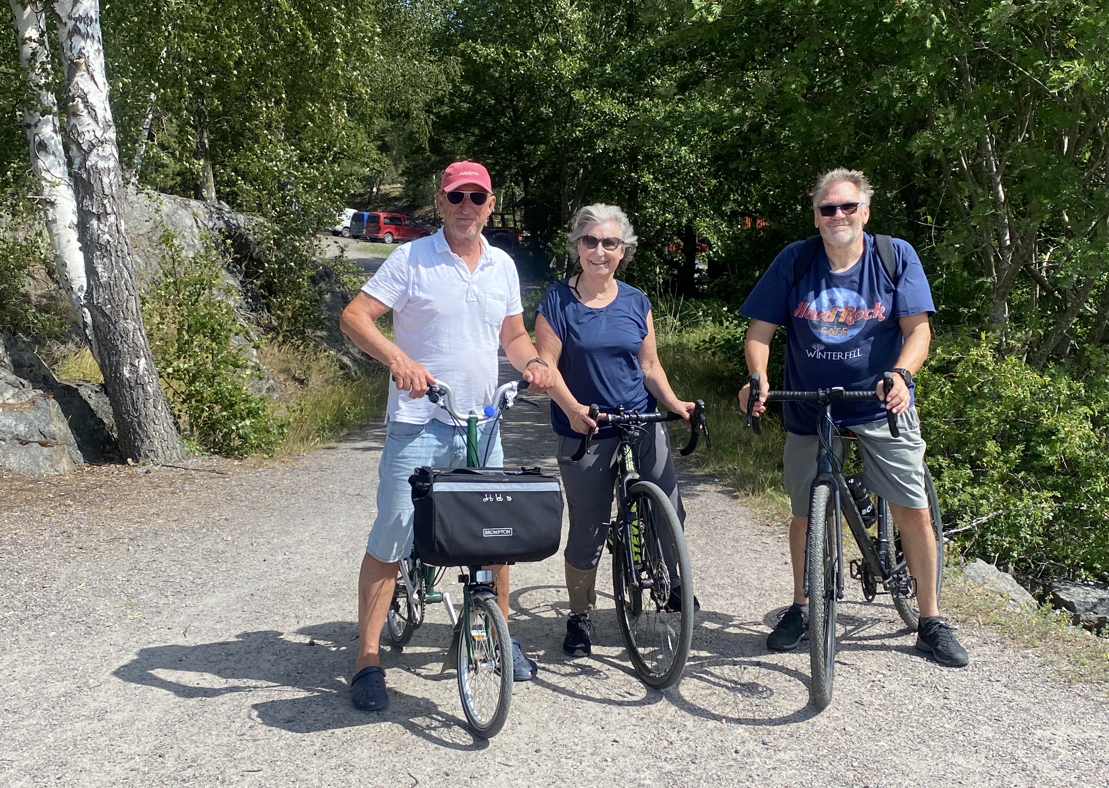 Das können jetzt auch Ruth und Thomas bestätigen. Die haben uns gestern besucht. Sie machen Urlaub in Gustavsberg und sind mit Auto und Fähre zu uns gekommen. Als begeisterte Fahrradfahrer hatten sie ihre Räder mit und wir haben einen herrlichen Ausflug auf die kleine Nachbarinsel gemacht. Ein platter Reifen, wird mit einem Ersatzschlauch in wenigen Minuten ersetzt.