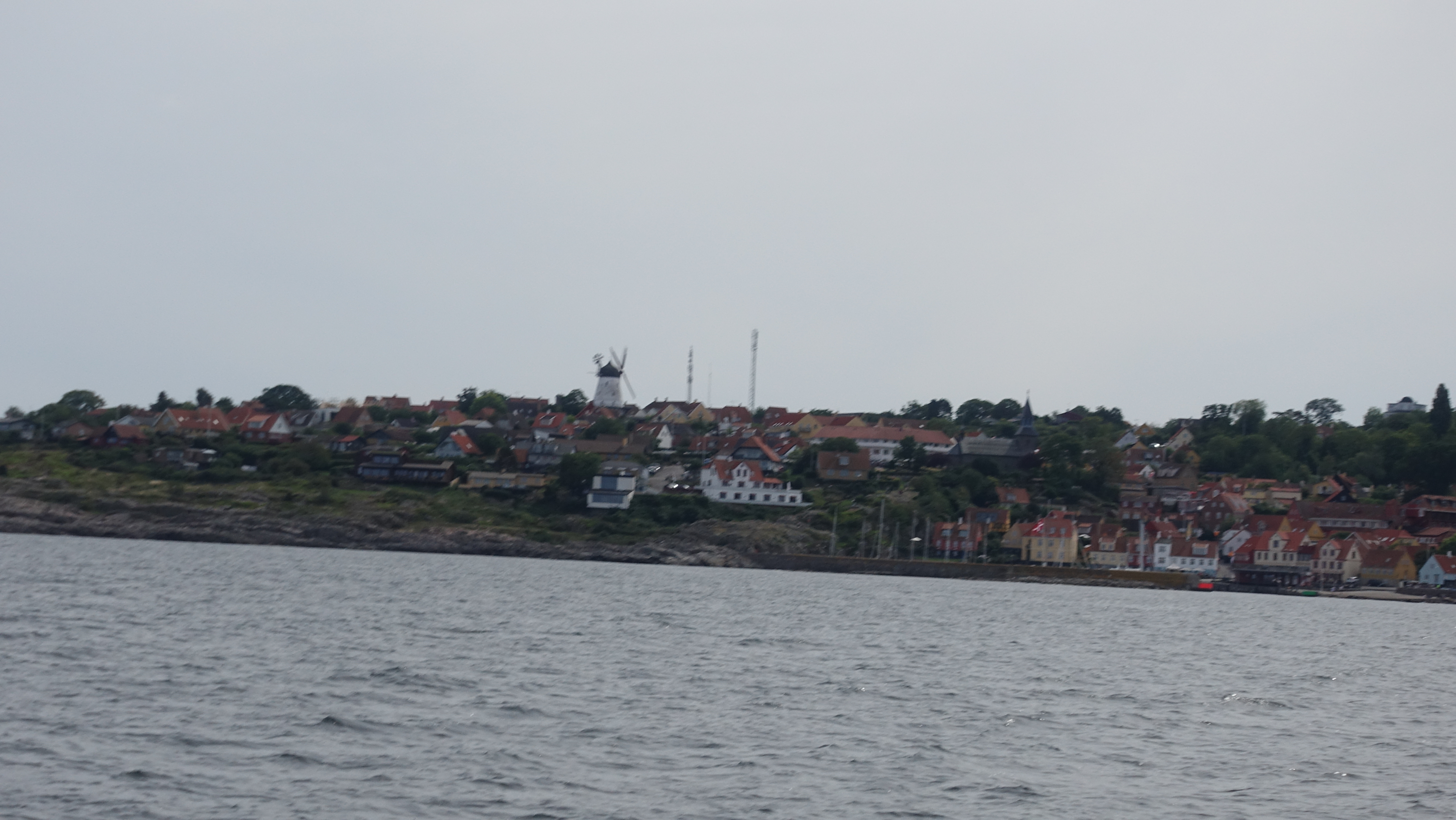 Bei den widrigen Bedingungen sind auf unserer Strecke nur wenige Segler unterwegs. Aber nach einer kurzen Eingewöhnung wird es ein anstrengender aber schöner Segeltörn und wir bekommen in Gudhjem noch den letzten Liegeplatz gegen den Wind. Das frühe Aufstehen hat sich ausgezahlt.