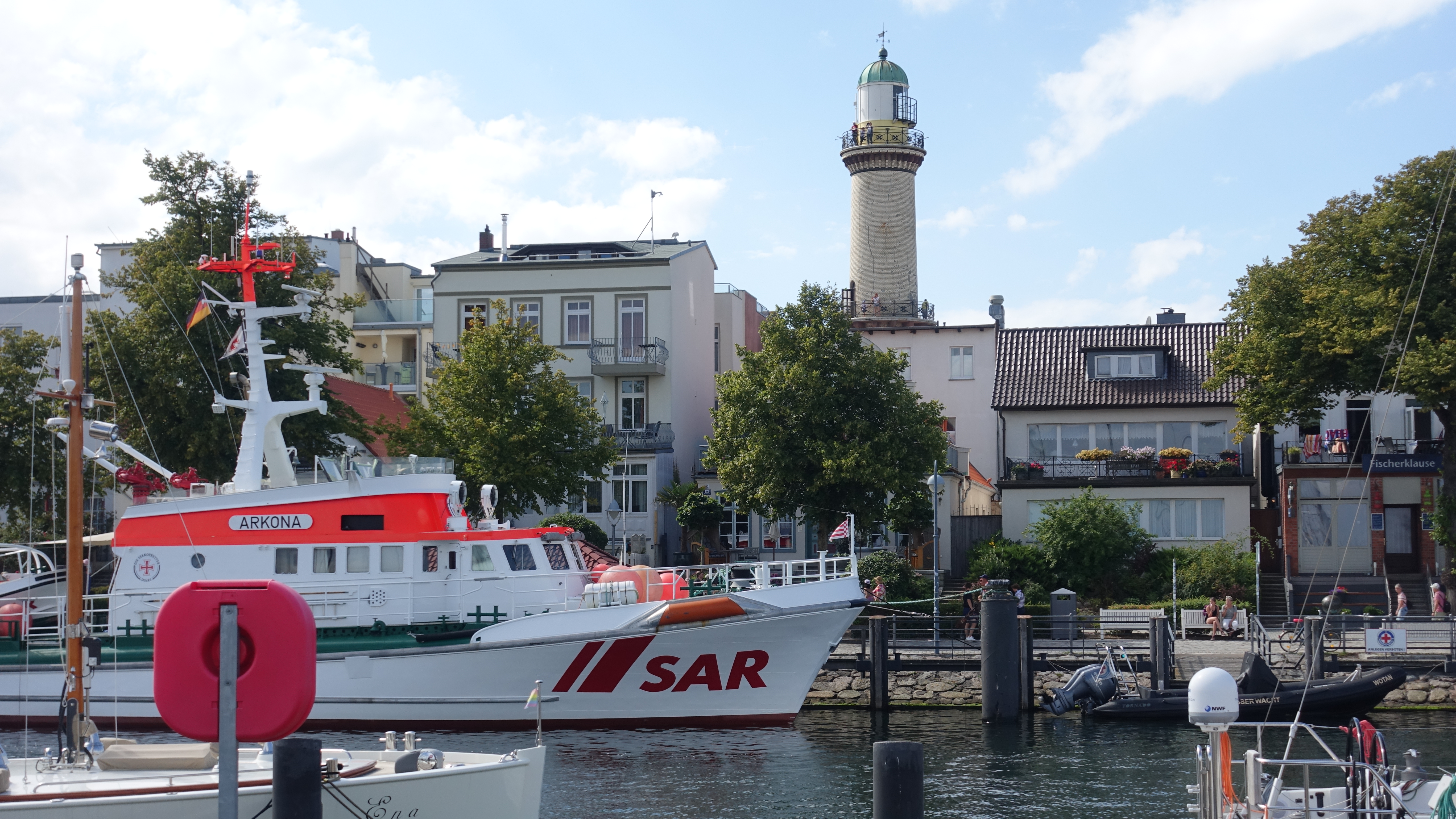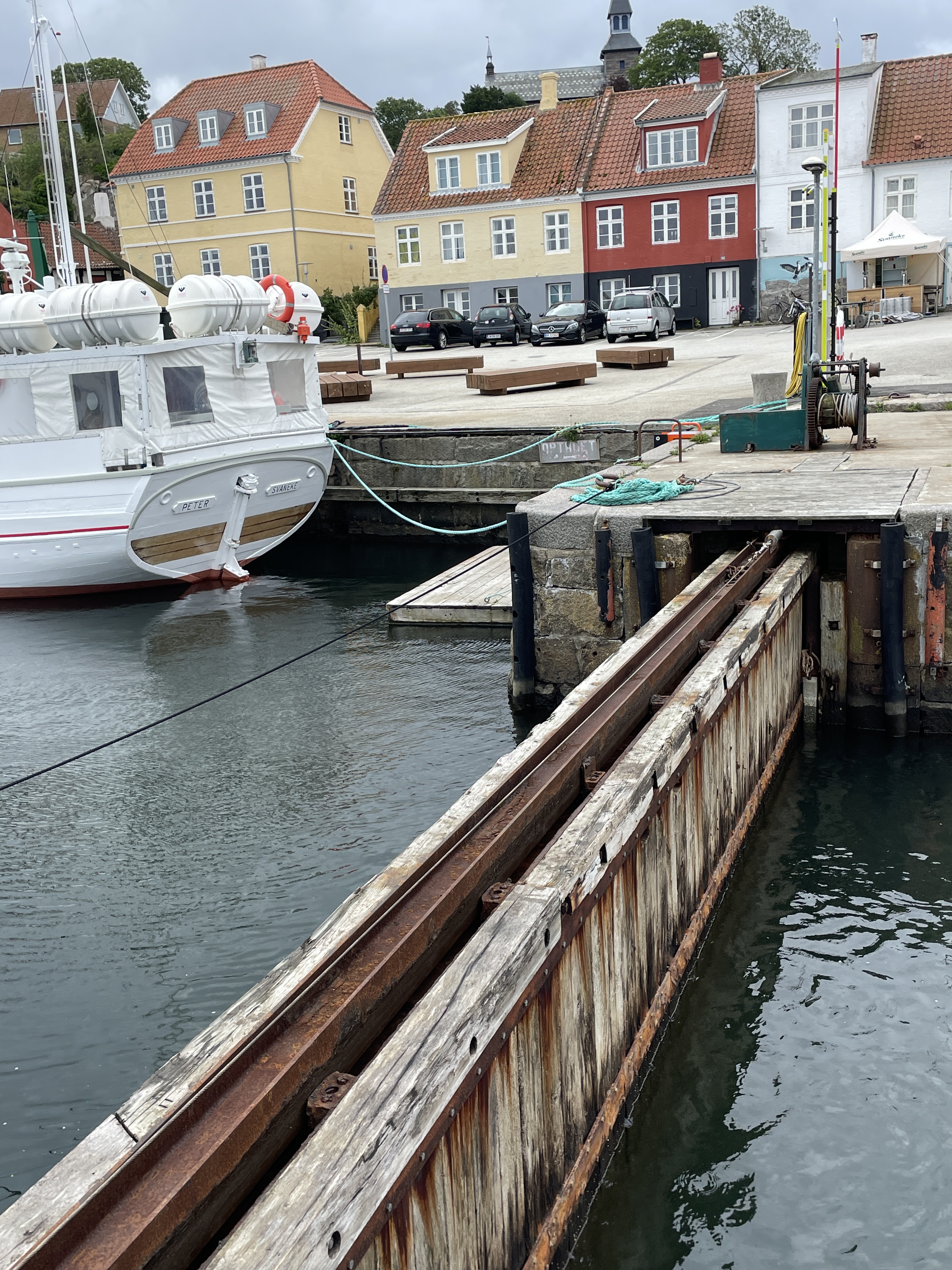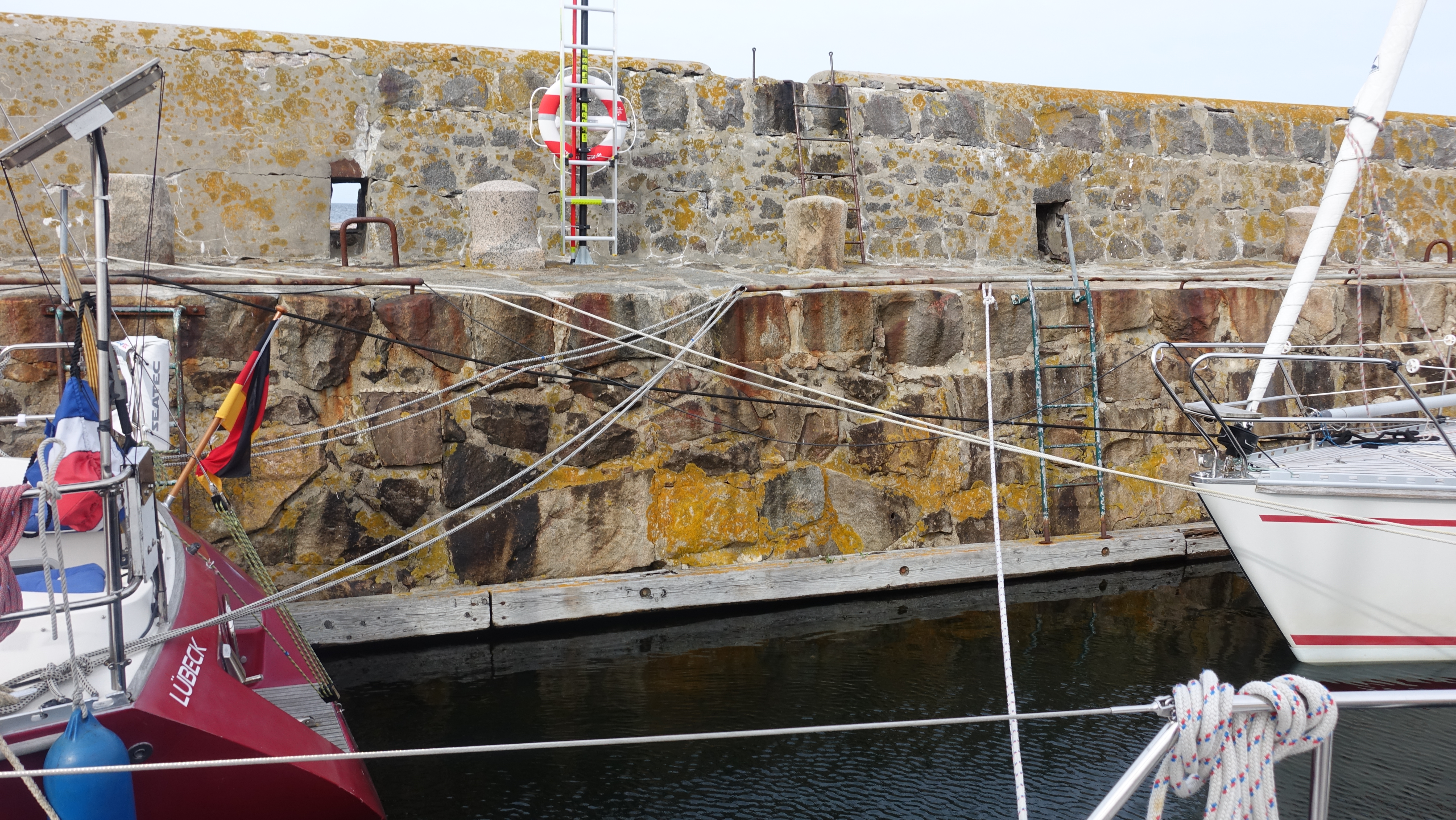 Jetzt ist der 5. Tag, der Wind hat nachgelassen, das Hafentor wurde geöffnet, aber es regnet noch. Unser Plan: morgen am Donnerstag in den Norden nach Allinge und von dort am Samstag nach Rügen (Lohme), um dann den langen Schlag (65 NM) um den Darß nach Warnemünde zu machen.