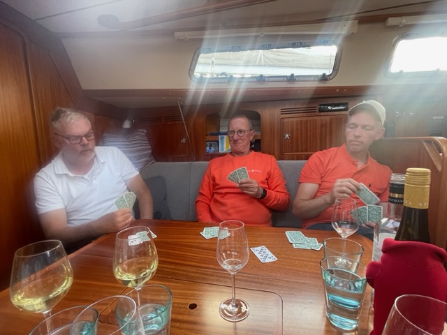Am Abend regnet es und wir holen uns die Pizza an Bord. Ute gibt Tips für die Alands. Es stellt sich raus, dass alle begeisterte Kartenspieler sind, also gibt es noch eine Runde Doppelkopf – Marcus genießt das sehr.