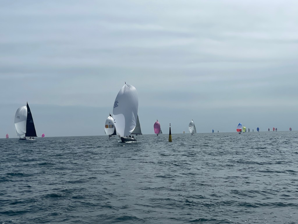 Danach machen wir zwei entscheidende Fehler. Erstens holen wir den Spi zu früh ein, weil wir dachten, dass der Wind zu vorlich kommt. Das kostet uns viel Zeit, weil wir wieder die kleine Fock segeln. Hier fehlt uns eben eine Genua 1. Beim Fahrtensegeln kein Problem, aber hier.