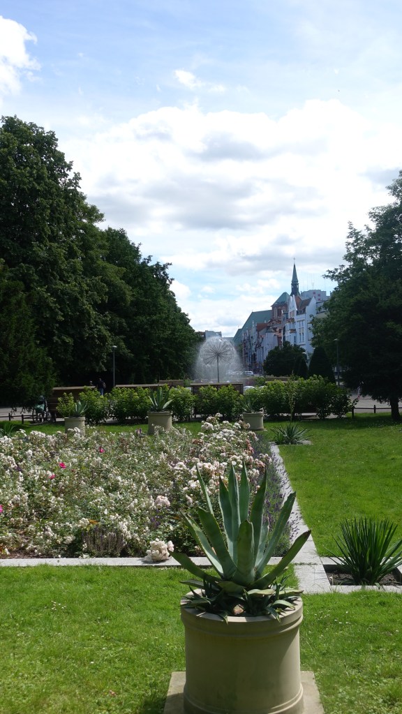 Die Stadt war einmal besetzt von Schweden, deshalb sind viele Straßenschilder auch in Schwedisch. Imposant die großen Backsteinbauten und Kirchen. Das zeugt alles von viel Reichtum im Mittelalter. Es gibt viele kleine Geschäfte und Restaurants – nicht 0815 wie so oft. Bei Tante Hedwig essen wir einen kleinen Snack.