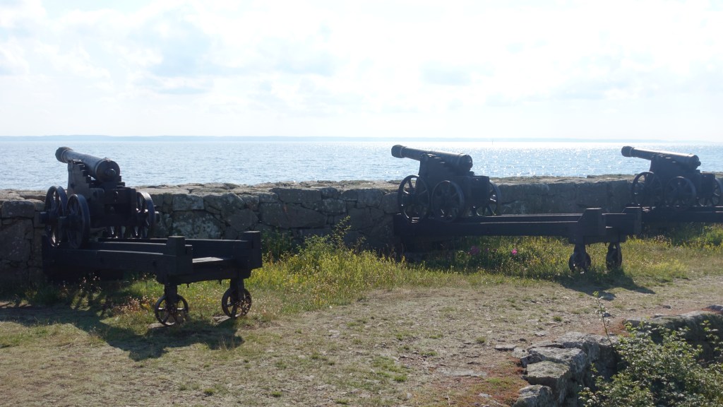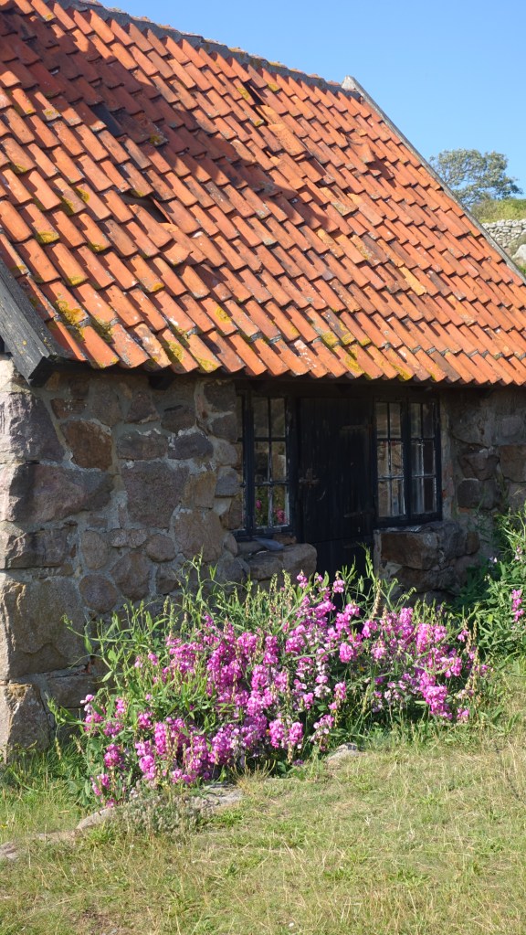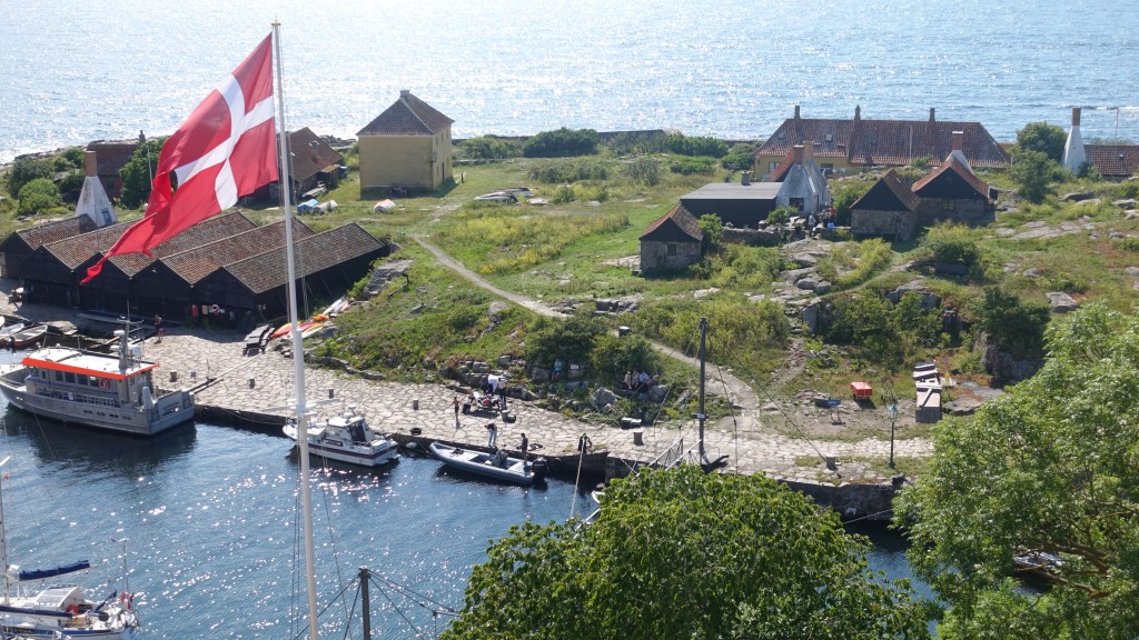 Es sind nur 12 SM und um 13.00h kommen wir an. Nach dem Anlegerkaffee erkunden wir die Insel. Sie ist immer wieder skurril schön. Die Häuser, die Felsen und das Grün im Licht der Sonne sind herrlich anzusehen. Immerhin leben hier 120 Menschen in den alten Befestigungsanlagen und es gibt ein gutes Restaurant und ein Koebmann. Versorgt wird die Insel von MS Peter aus Gudhjem.
