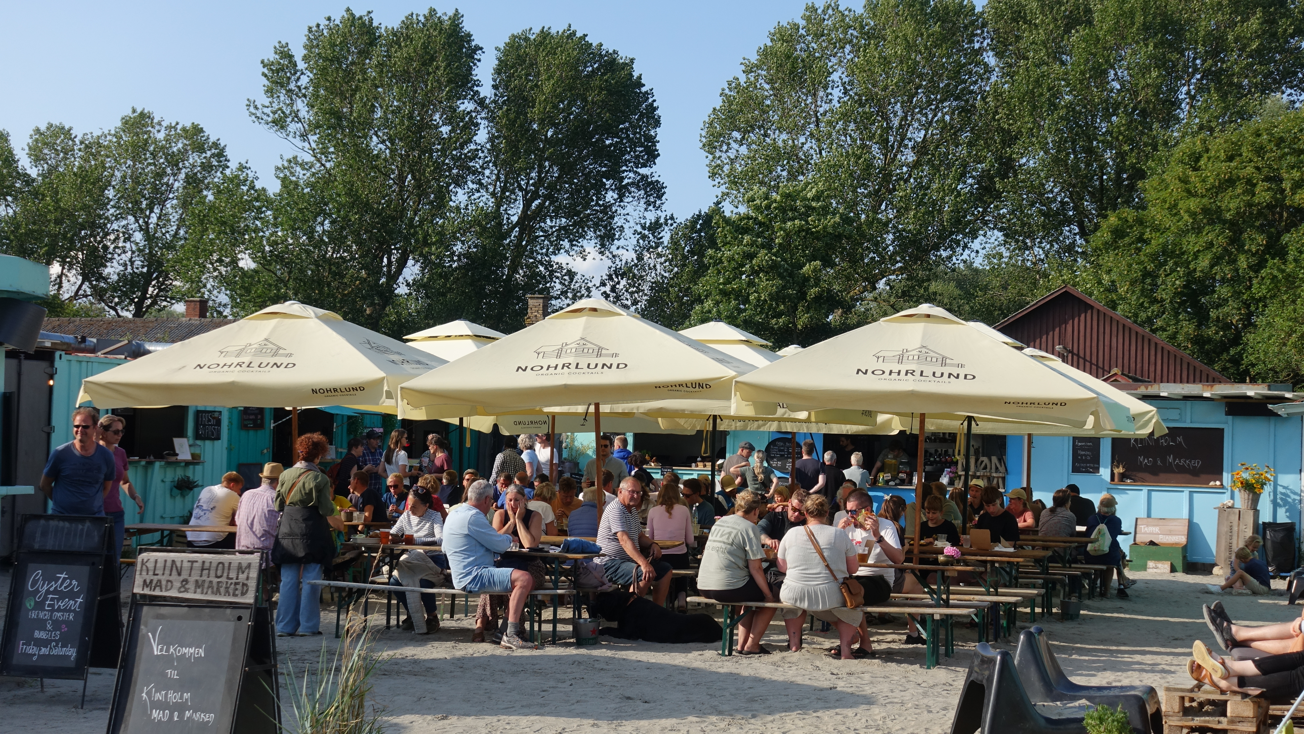 Seit einigen Jahren betreiben Vattenfall und EnBW einen Windpark in der Nähe. Das hat etwas Leben in den Ort gebracht, z.B. kleine Pop-Up Geschäfte, einen Outdoor-Food-Court. Eine gute Idee, so etwas müsste es häufiger geben. Unseren Anleger trinken wir aber – wie immer – in der kultigen Bar am Fischereihafen.
