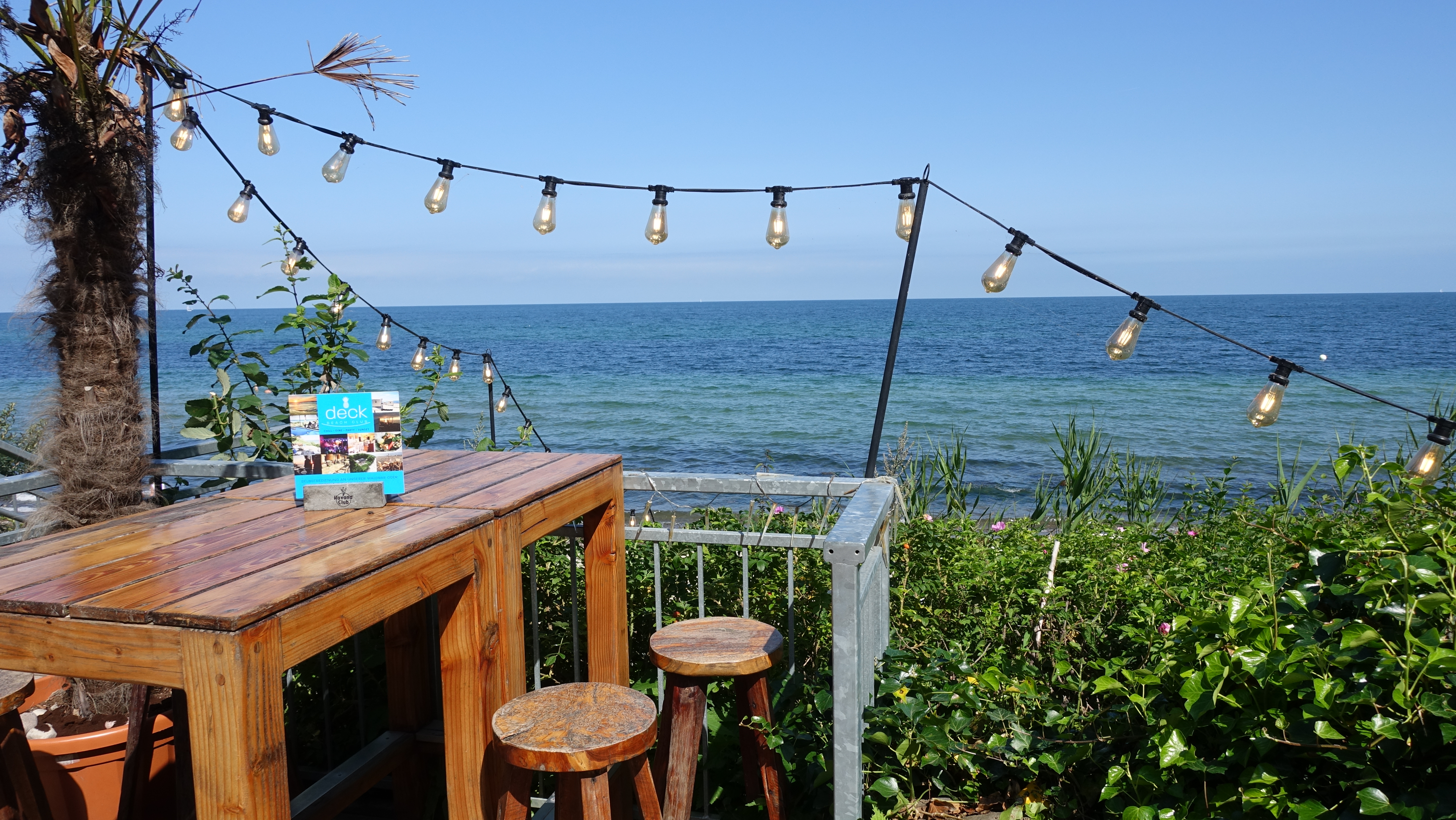 Von Hohe Düne geht es am nächsten Tag bei Flaute mit Motor nach Kühlungsborn. Hier bleiben wir drei Tage und machen Badeurlaub. Es gibt diesen wunderschönen Fahrrad- und Fußweg in Richtung Heiligendamm, am Ende ist eine Strandbar, man kommt sich vor wie in der Karibik.