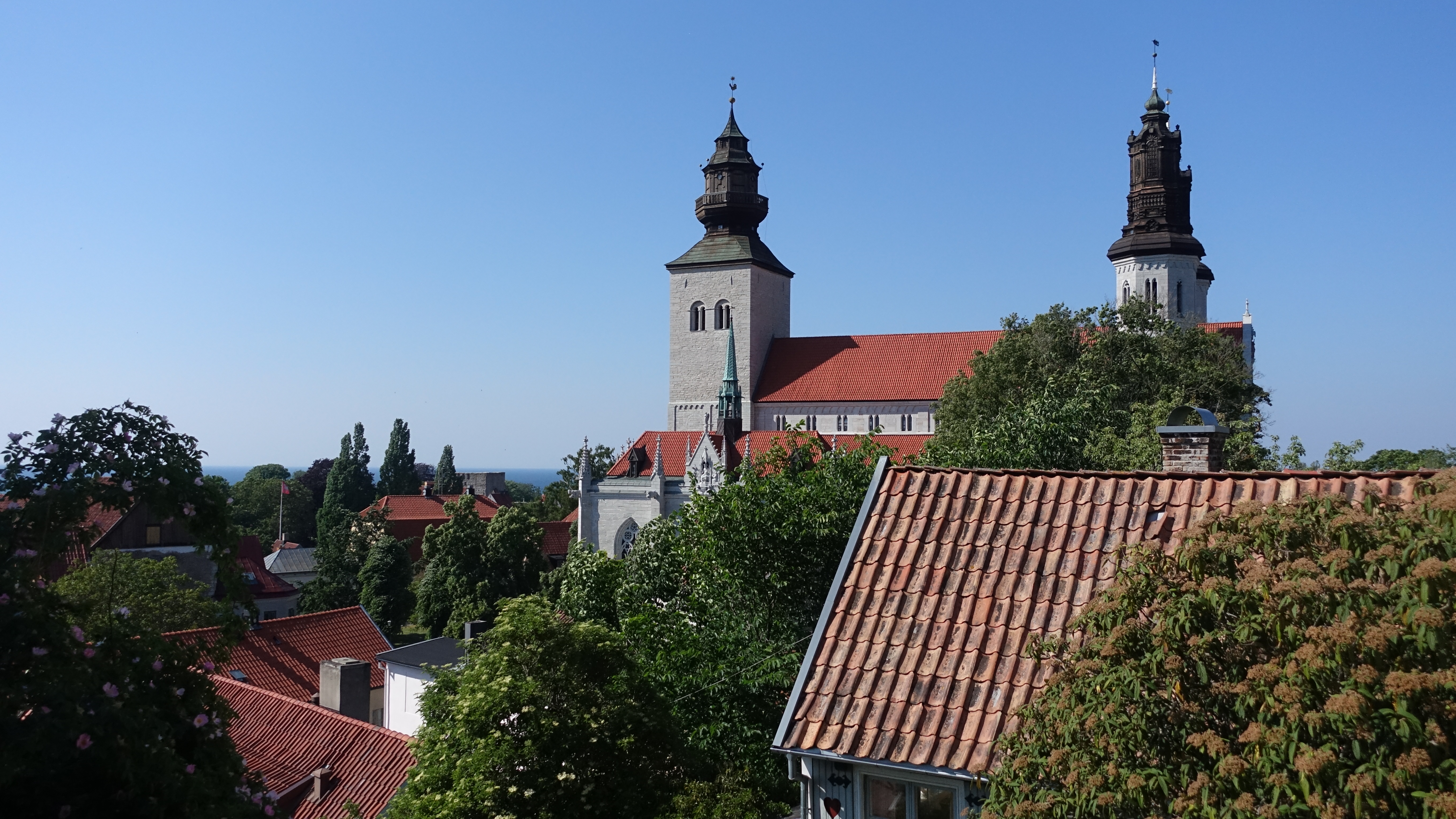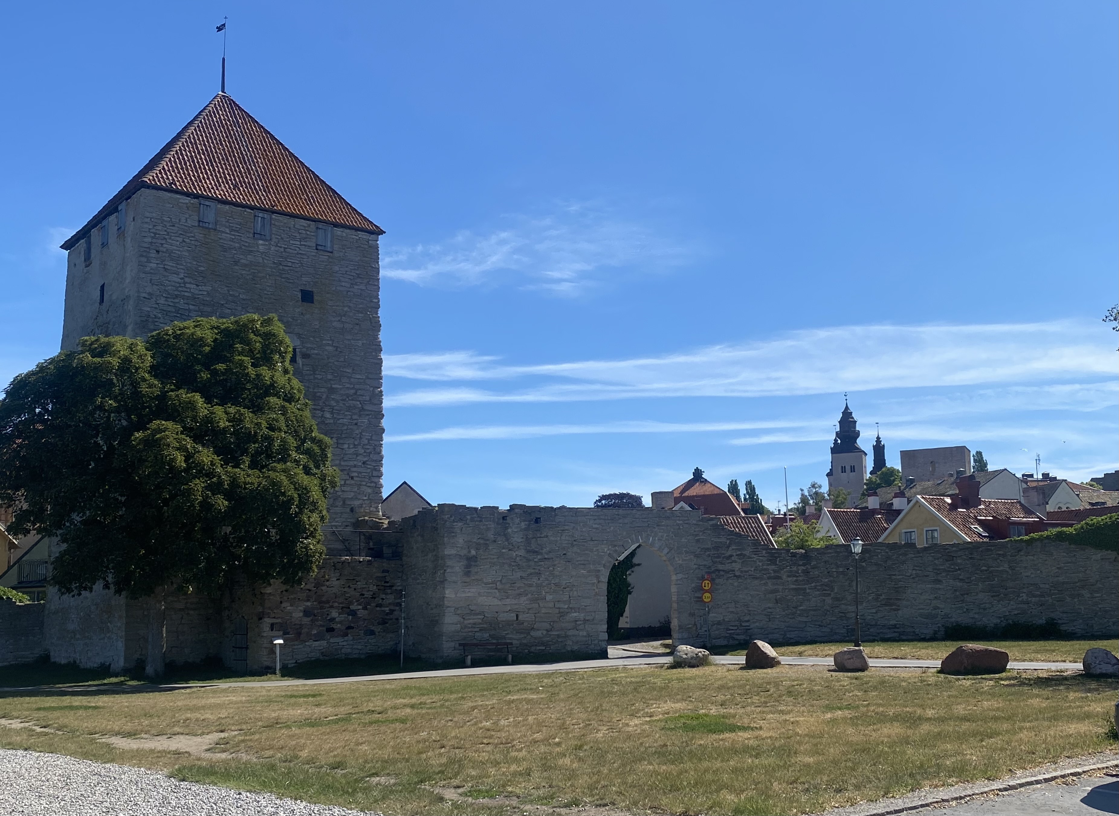 Visby ist eine Hansestadt, es hatte ein Bündnis mit Lübeck und war wohl Zwischenstation nach Russland und weiter nach Asien. Man spürt den Reichtum der Stadt immer noch. Wir haben selten eine so schöne mittelalterliche Stadt gesehen. Die Stadtmauer ist komplett erhalten und die Häuser und Gassen sind wunderschön.