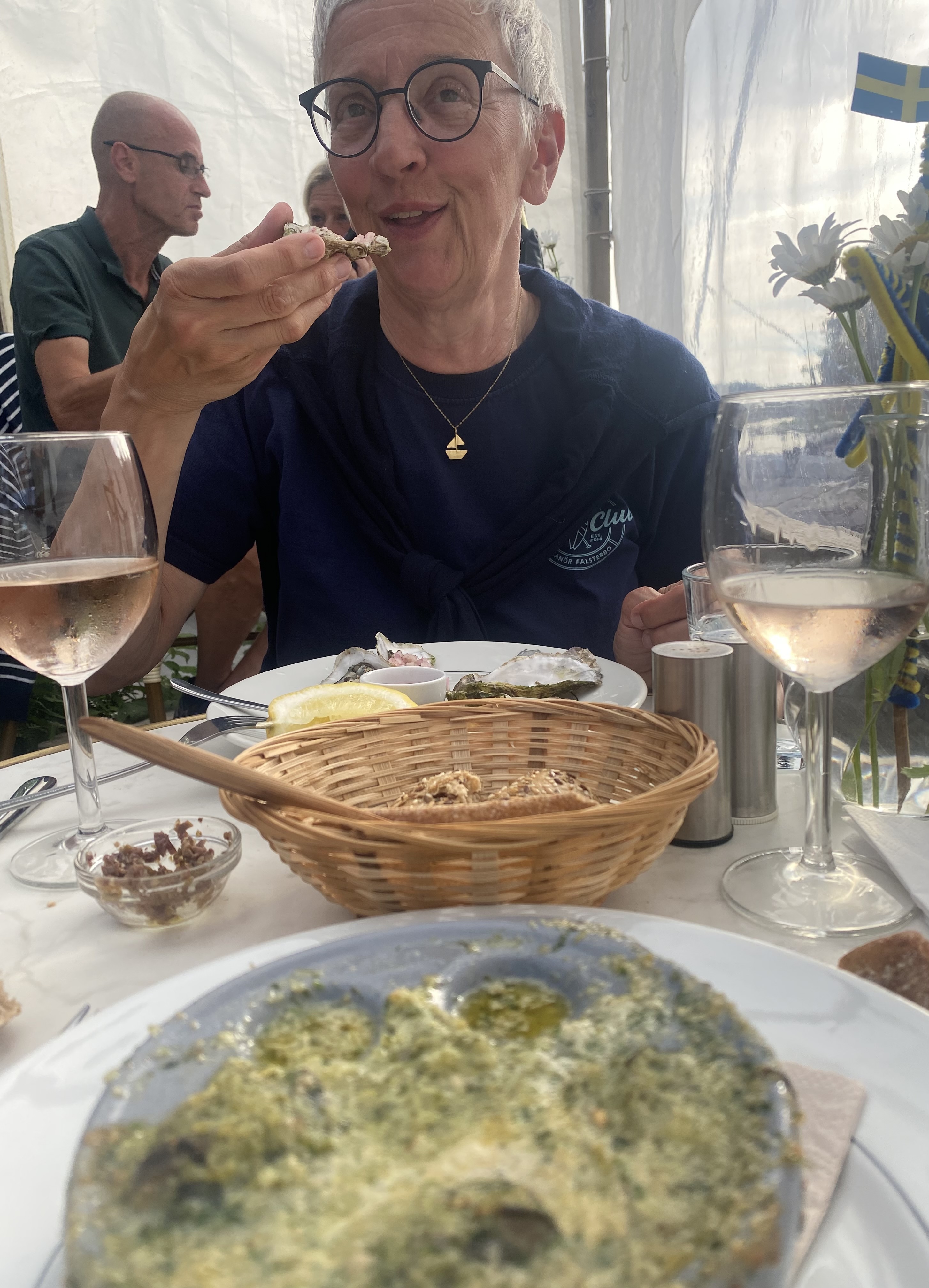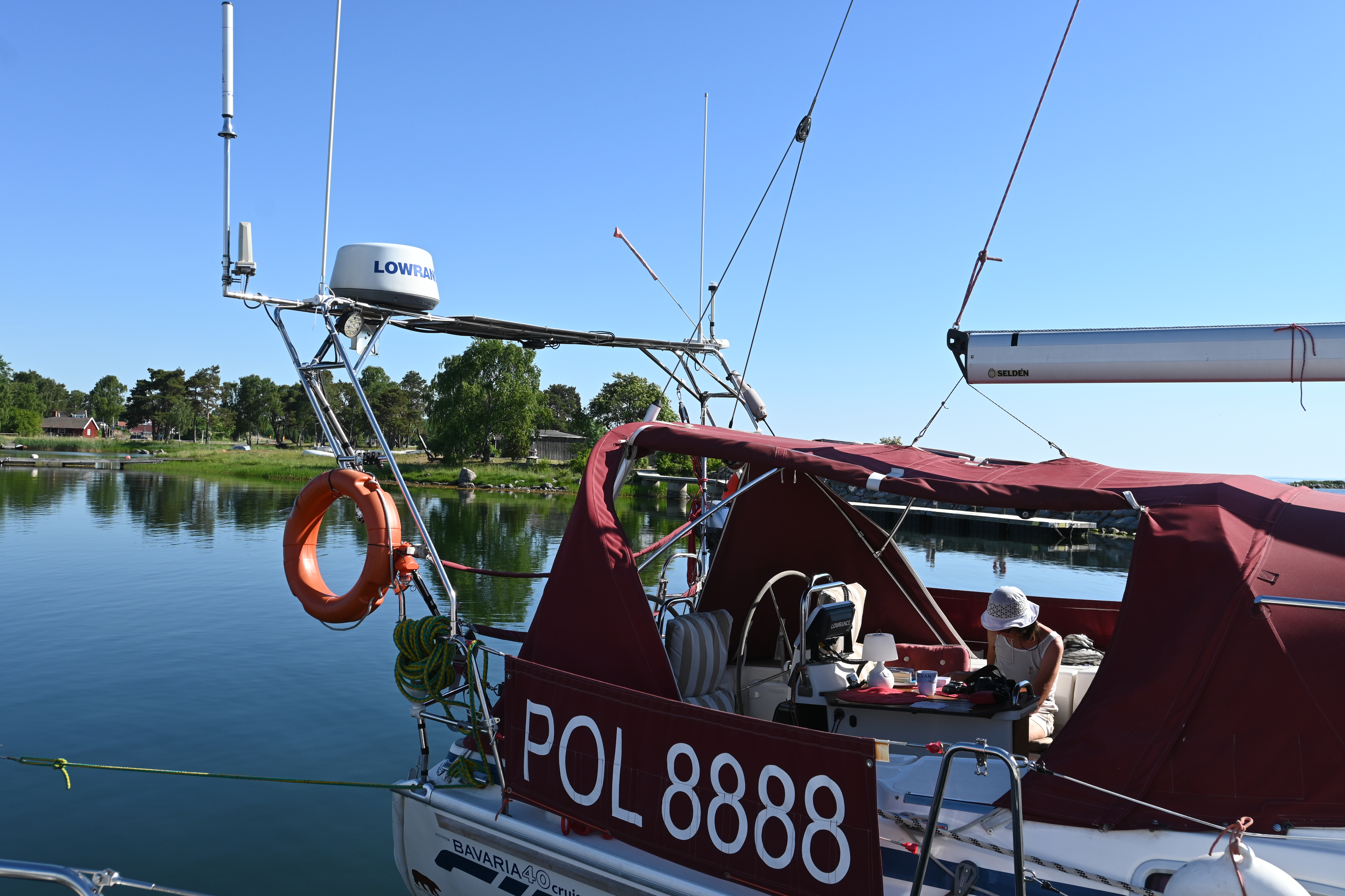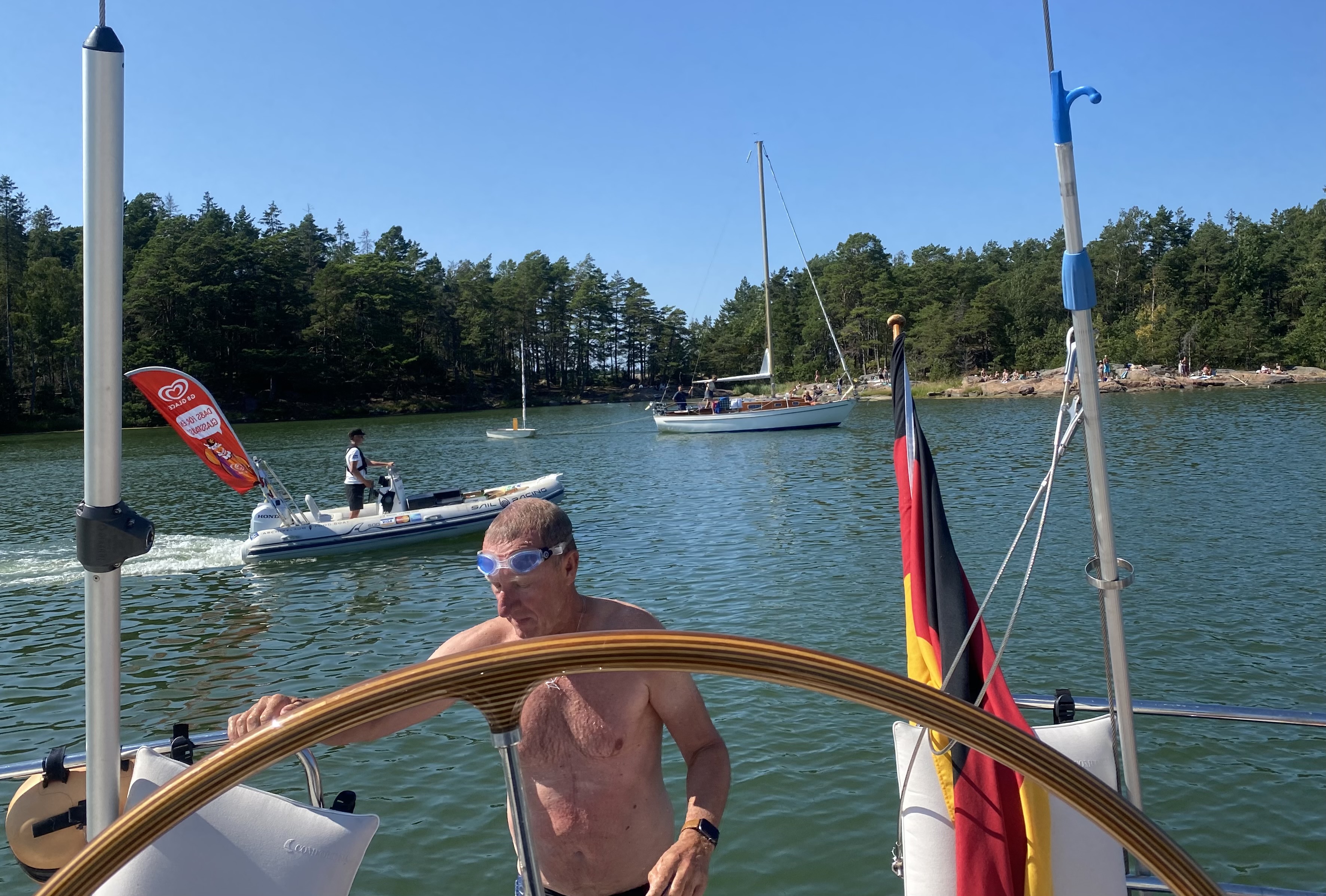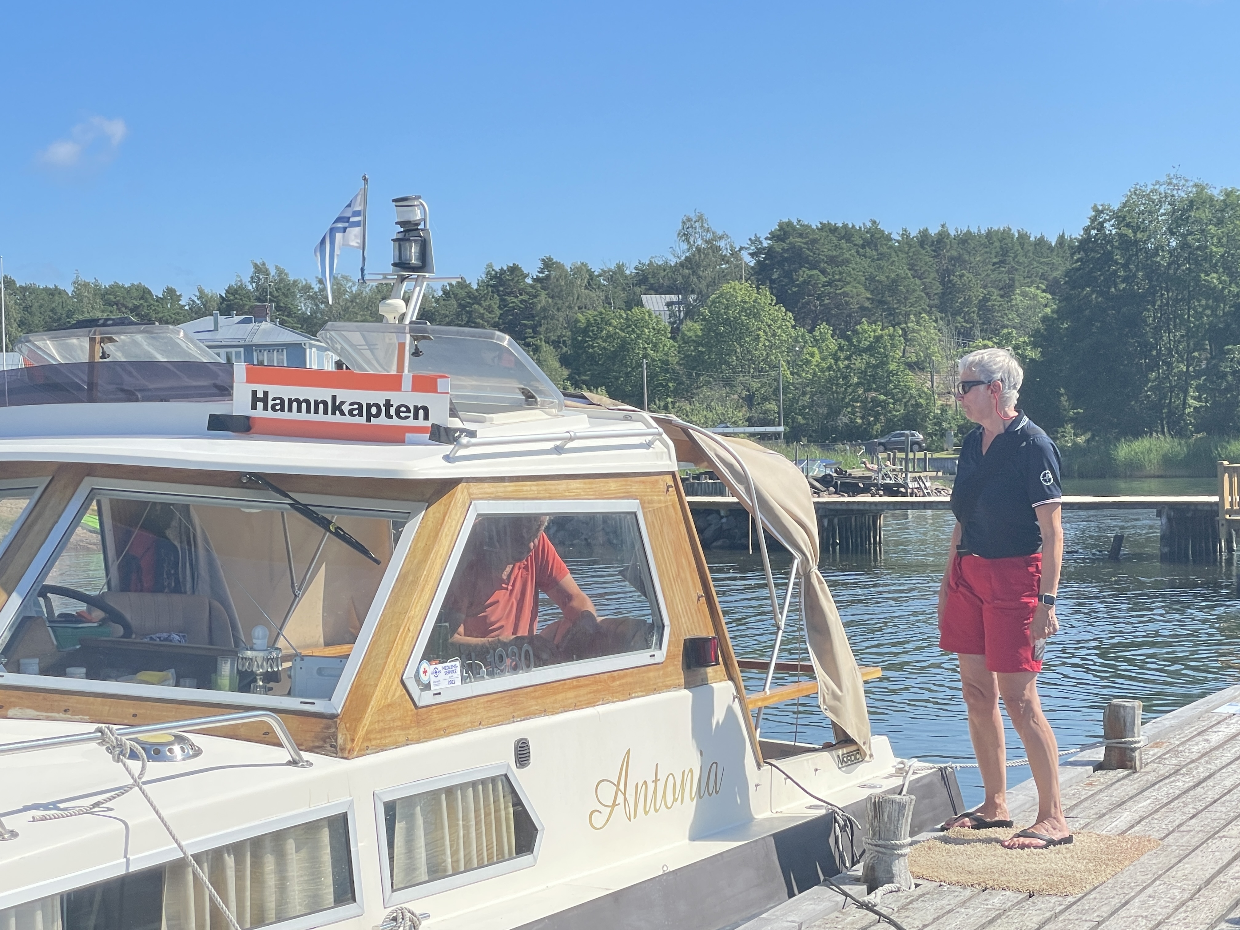 Am ersten Tag kommt die Swedish Coastguard und kontrolliert die ausländischen Schiffe. Erstmalig in unserer Segelzeit werden wir kontrolliert. Sehr freundliche Beamtinnen. Die „Verhandlungen“ übernimmt Ute. Wir haben alle Schiffsdokumente und die Impfpässe immer parat, damit nimmt sie denen gleich den Wind aus den Segeln. Corona ist natürlich der Anlass, aber es geht nicht nur darum. Wir müssen die MMSI (Funkt-Telefonnummer) angeben und sind jetzt als „clean“ gespeichert und können uns drauf bei nächster Kontrolle berufen. Typisch Schweden!