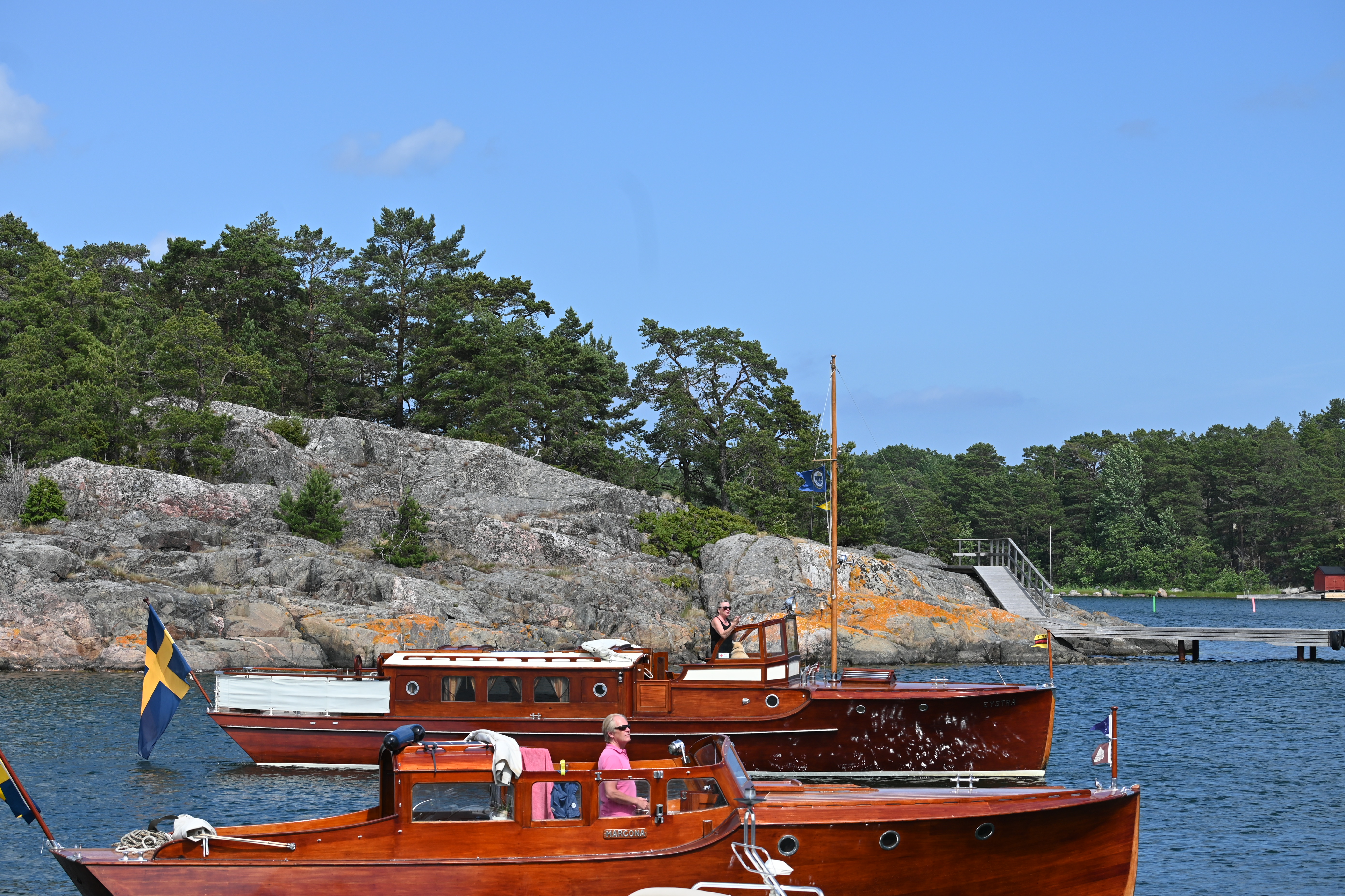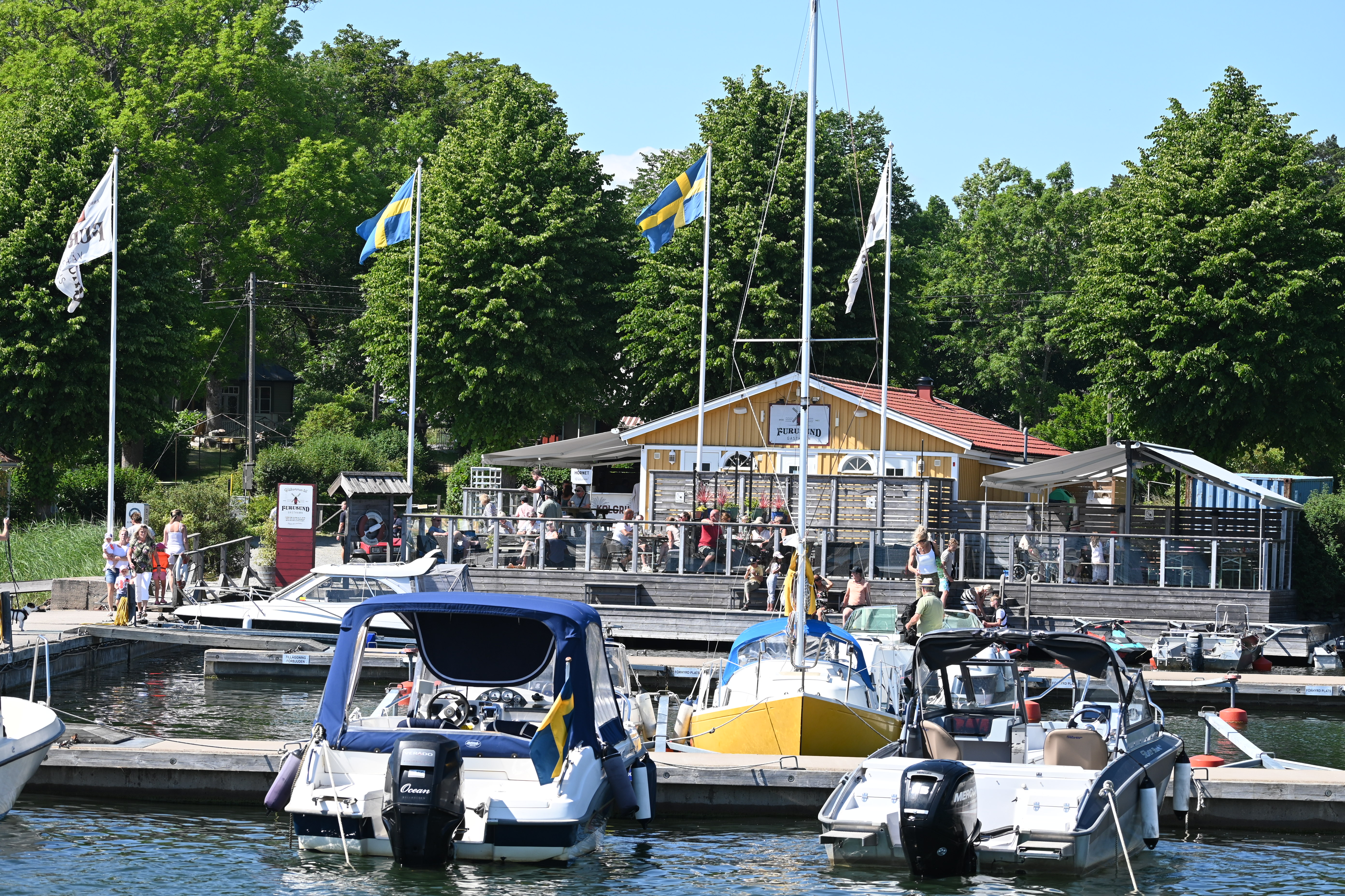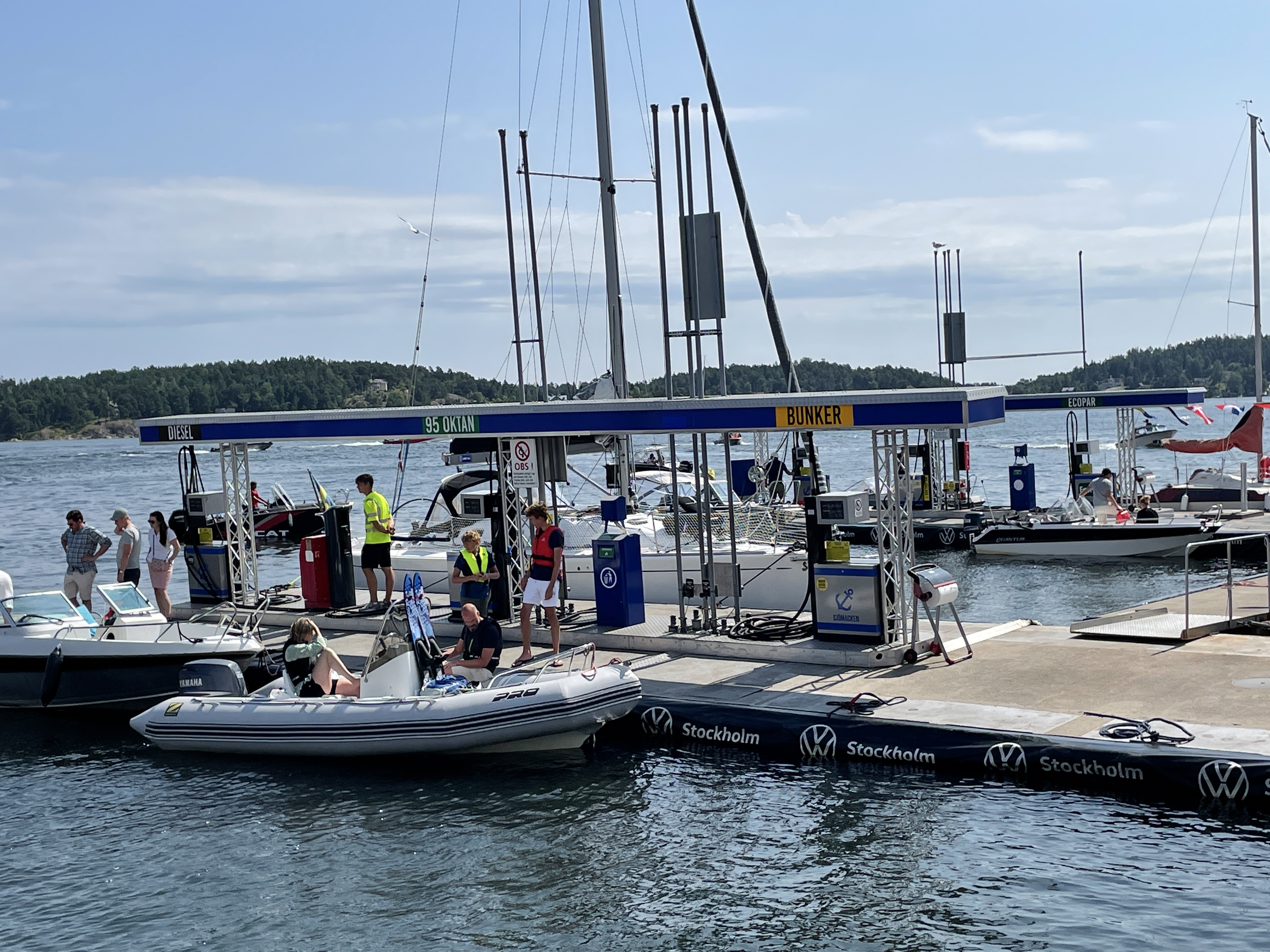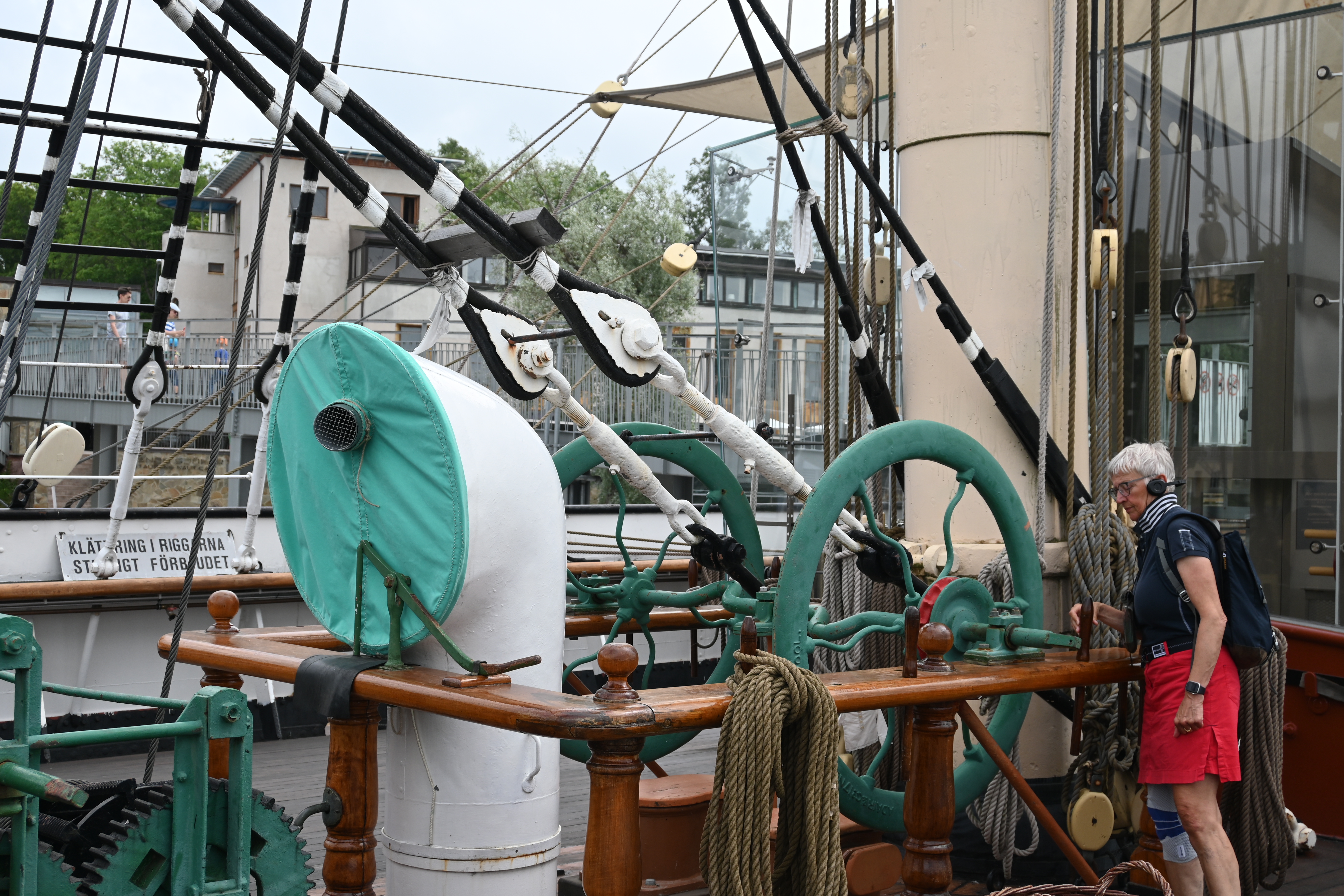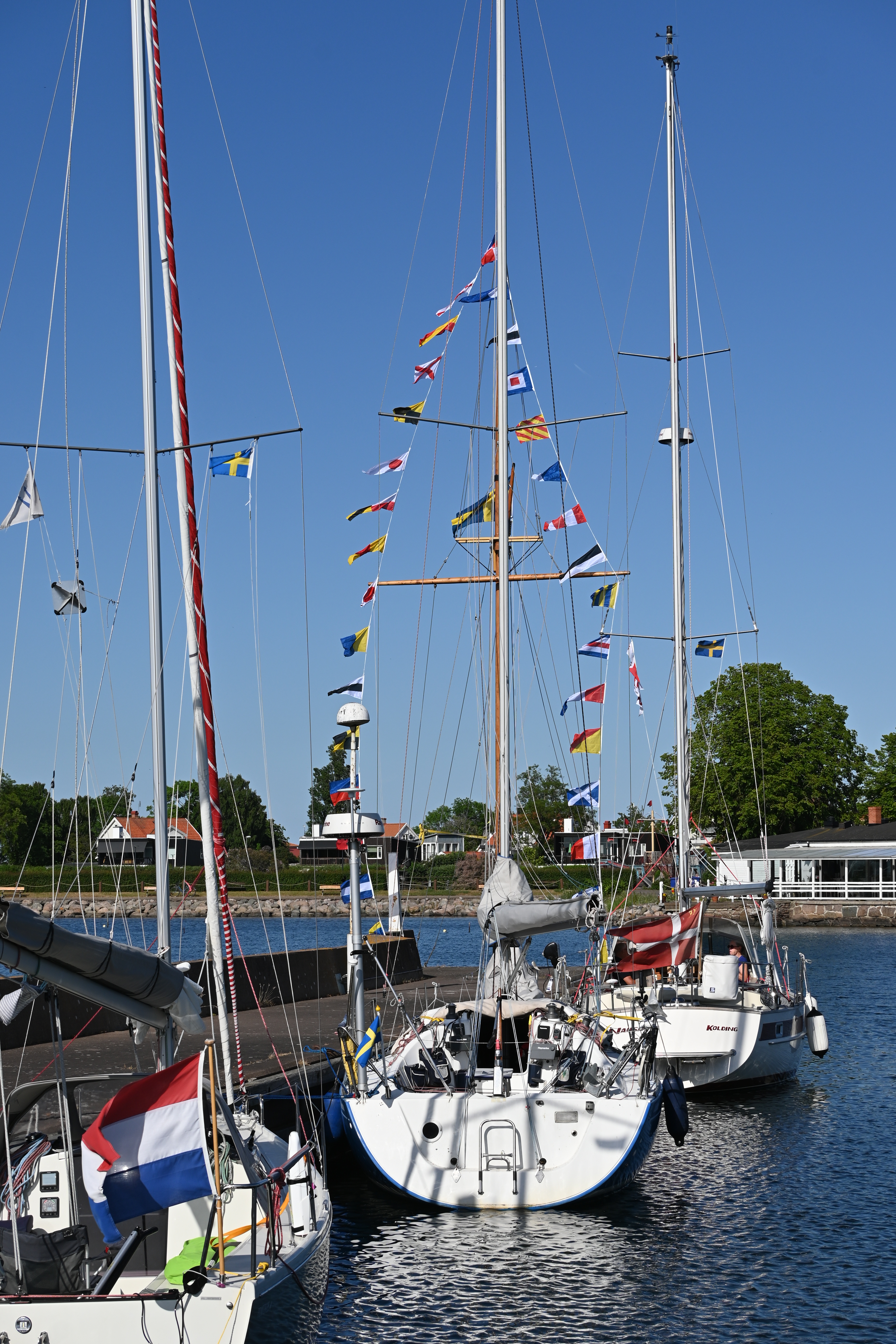 Am ersten Tag kommt die Swedish Coastguard und kontrolliert die ausländischen Schiffe. Erstmalig in unserer Segelzeit werden wir kontrolliert. Sehr freundliche Beamtinnen. Die „Verhandlungen“ übernimmt Ute. Wir haben alle Schiffsdokumente und die Impfpässe immer parat, damit nimmt sie denen gleich den Wind aus den Segeln. Corona ist natürlich der Anlass, aber es geht nicht nur darum. Wir müssen die MMSI (Funkt-Telefonnummer) angeben und sind jetzt als „clean“ gespeichert und können uns drauf bei nächster Kontrolle berufen. Typisch Schweden!