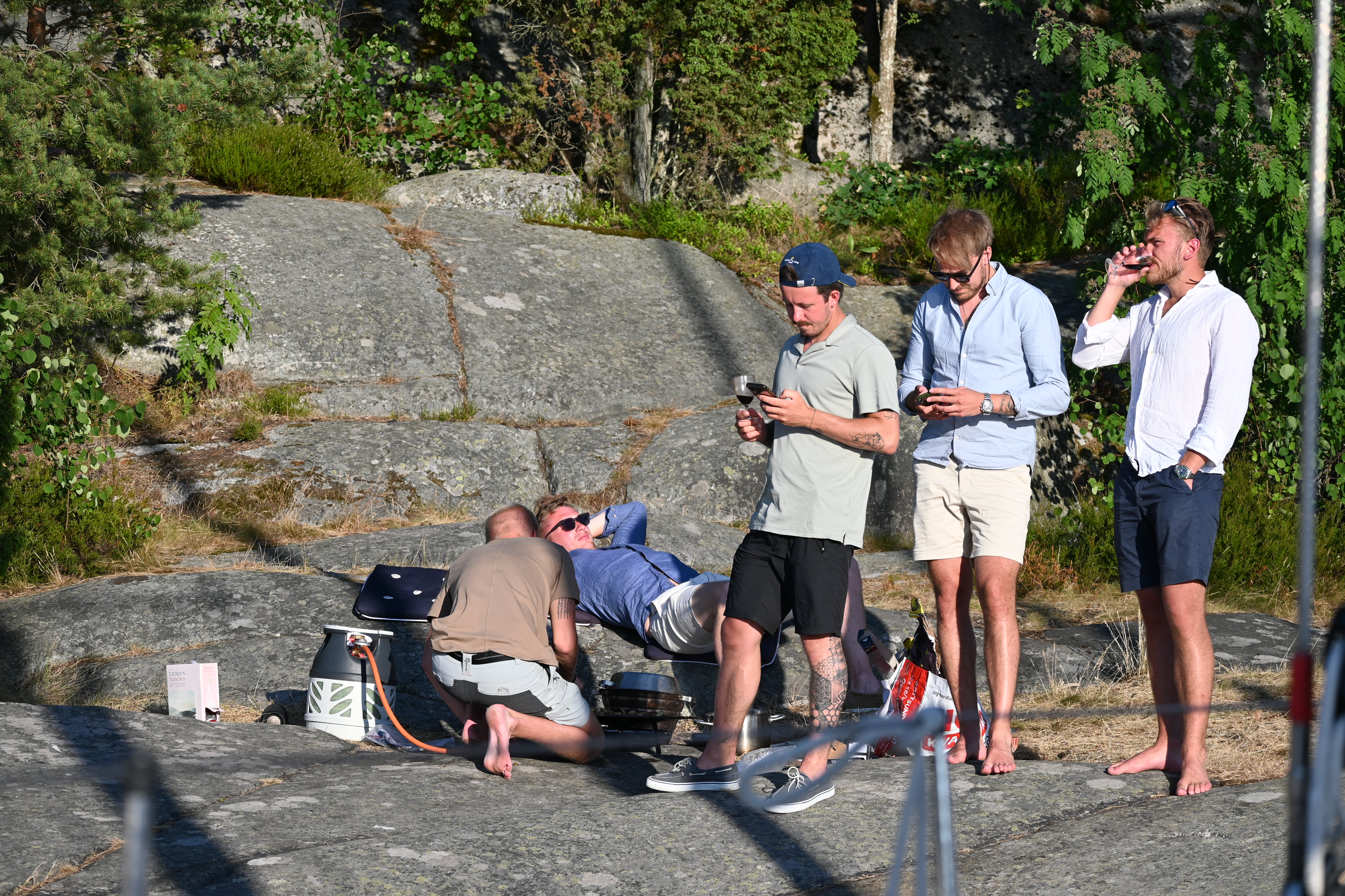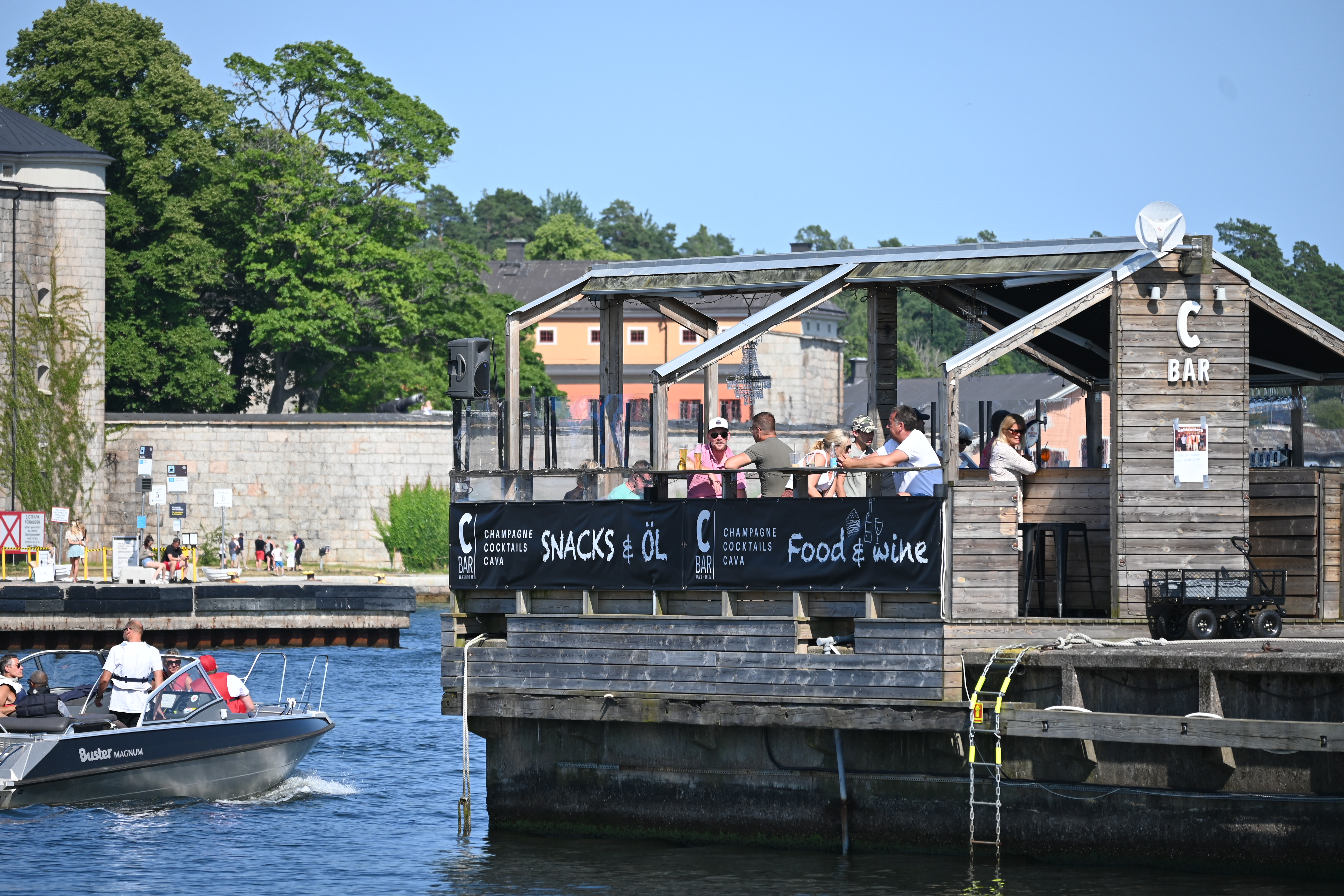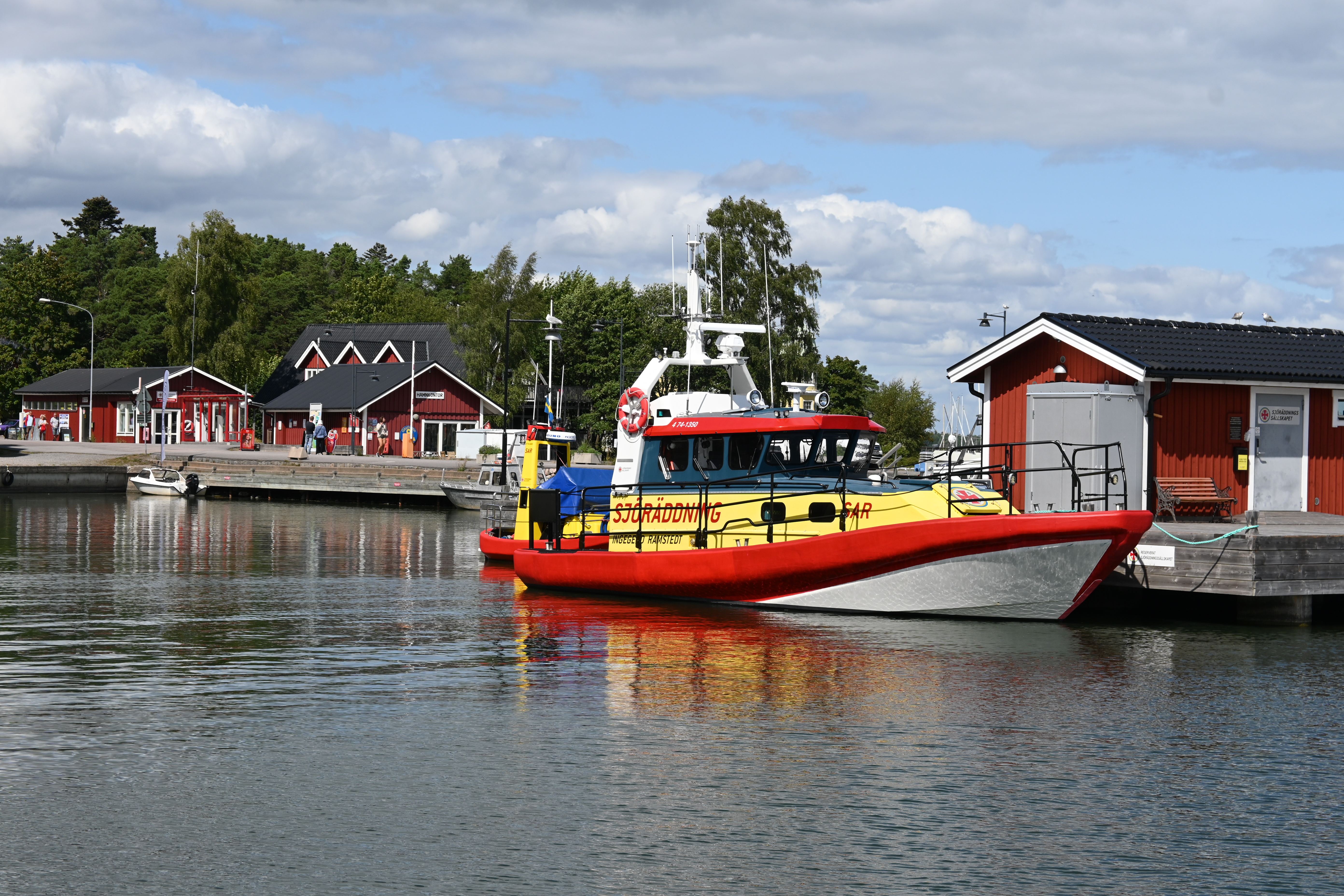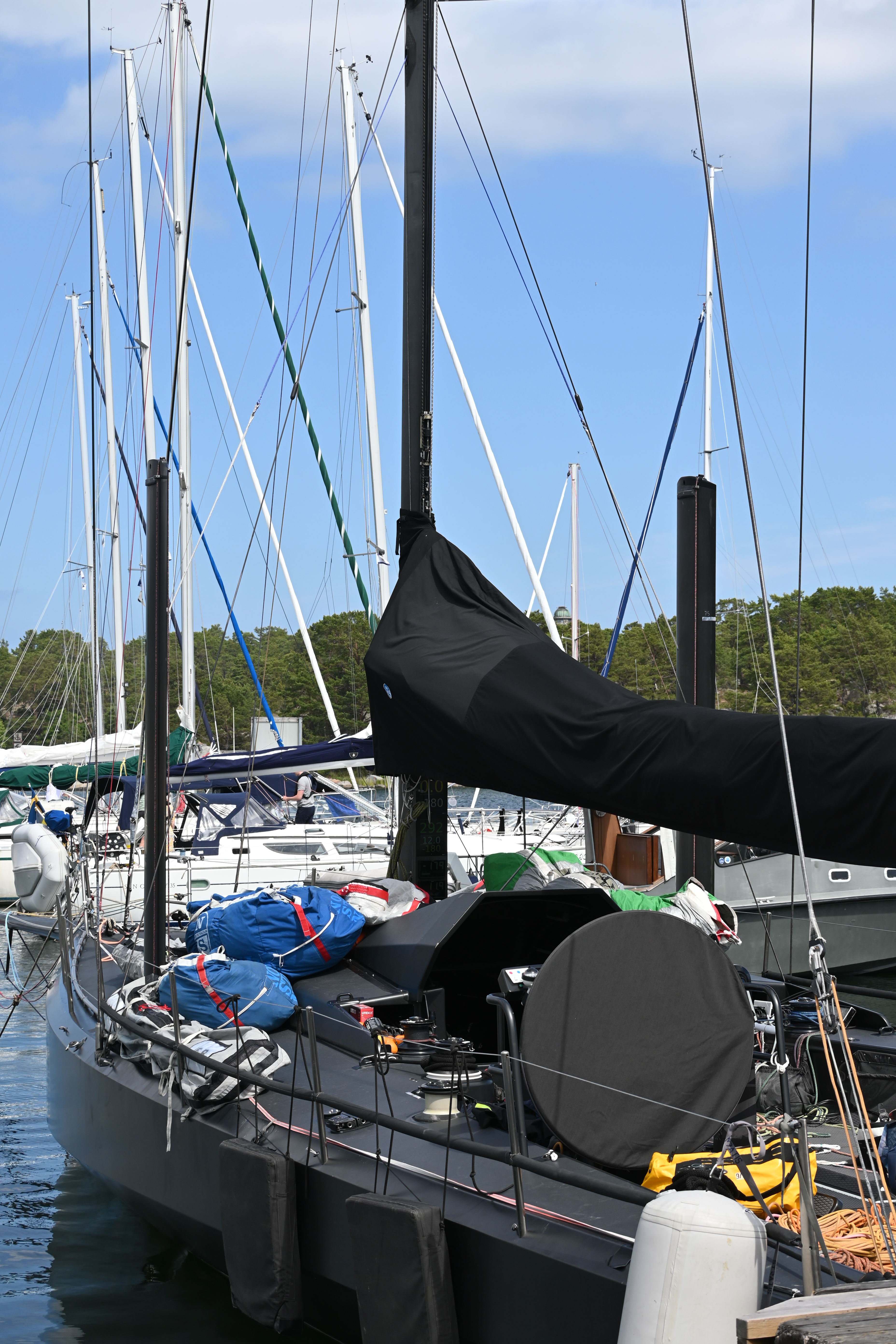 Am ersten Tag kommt die Swedish Coastguard und kontrolliert die ausländischen Schiffe. Erstmalig in unserer Segelzeit werden wir kontrolliert. Sehr freundliche Beamtinnen. Die „Verhandlungen“ übernimmt Ute. Wir haben alle Schiffsdokumente und die Impfpässe immer parat, damit nimmt sie denen gleich den Wind aus den Segeln. Corona ist natürlich der Anlass, aber es geht nicht nur darum. Wir müssen die MMSI (Funkt-Telefonnummer) angeben und sind jetzt als „clean“ gespeichert und können uns drauf bei nächster Kontrolle berufen. Typisch Schweden!
