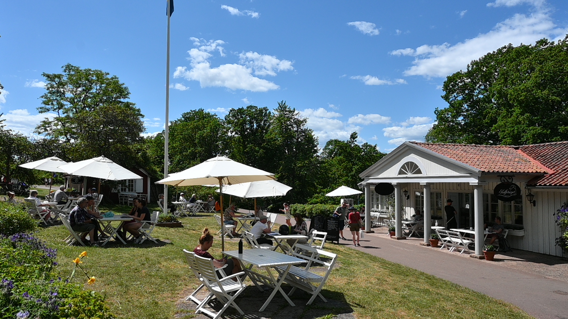 Wir machen wieder den wunderschönen Weg zur königlichen Sommerresidenz, trinken einen Kaffee und Ute isst „Kanelbullar“, das Nationalgebäck mit Zimtschnecken. Scheint sehr gut zu schmecken.