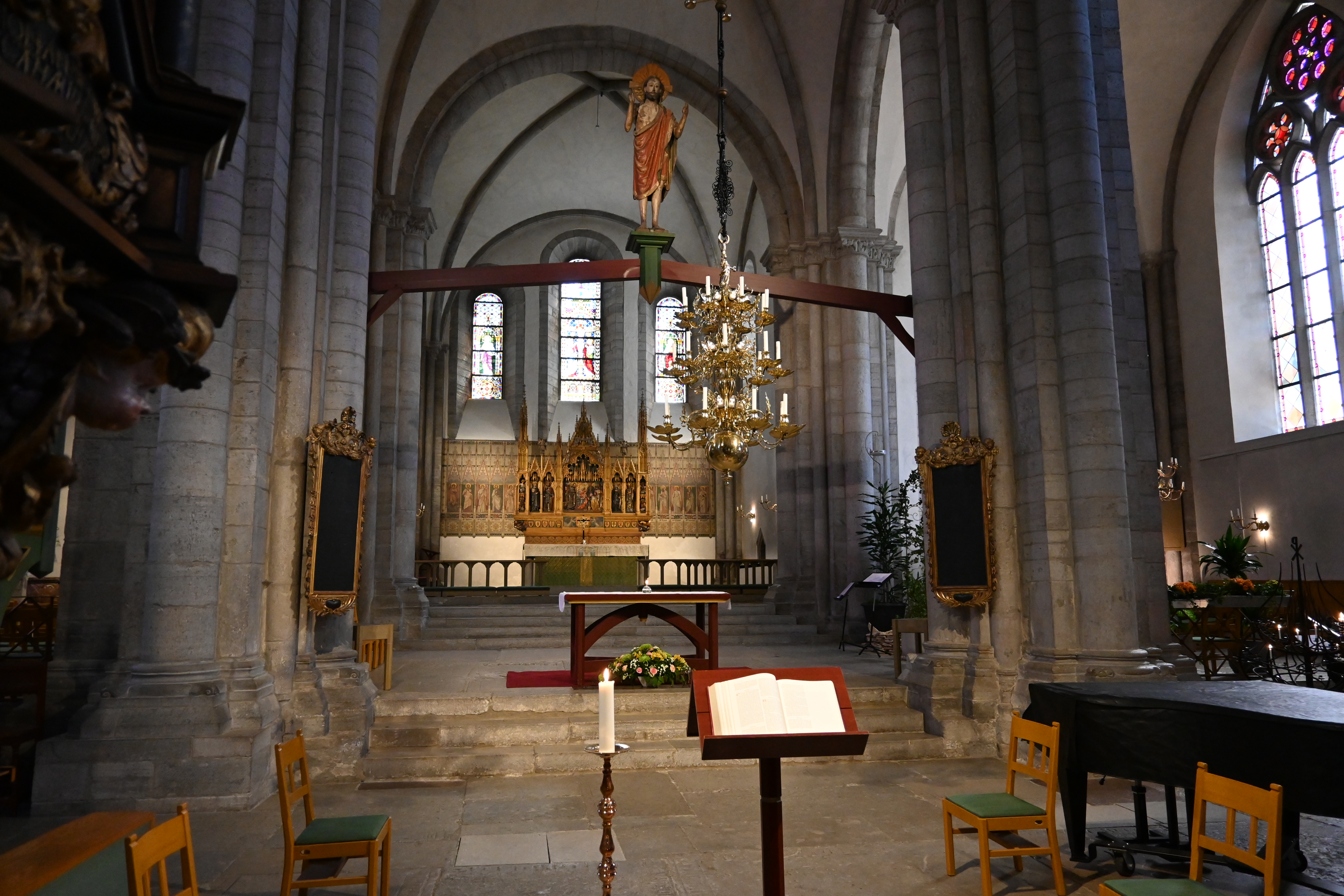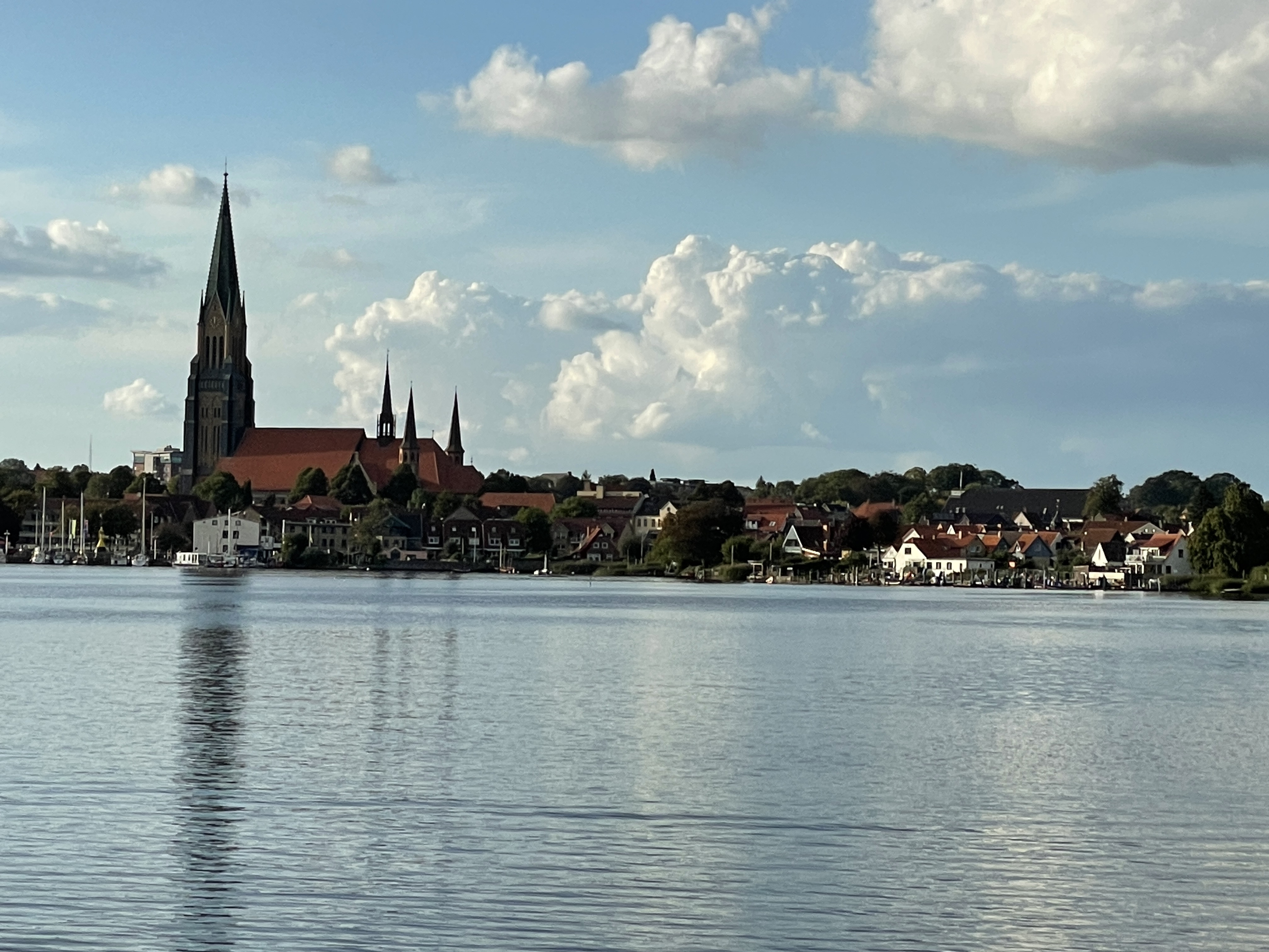 Am Ende der Großen Breite ist der Fjord so eng, dass 5m vom Boot entfernt die Vögel im Wasser stehen. Danach sind es nur noch 3 SM bis Schleswig. Hier endet die Schlei, die ja kein Fluss ist. Sofort fällt auf, dass der imposante Dom, der viele Jahre renoviert wurde, fertig ist – sehr schön.
