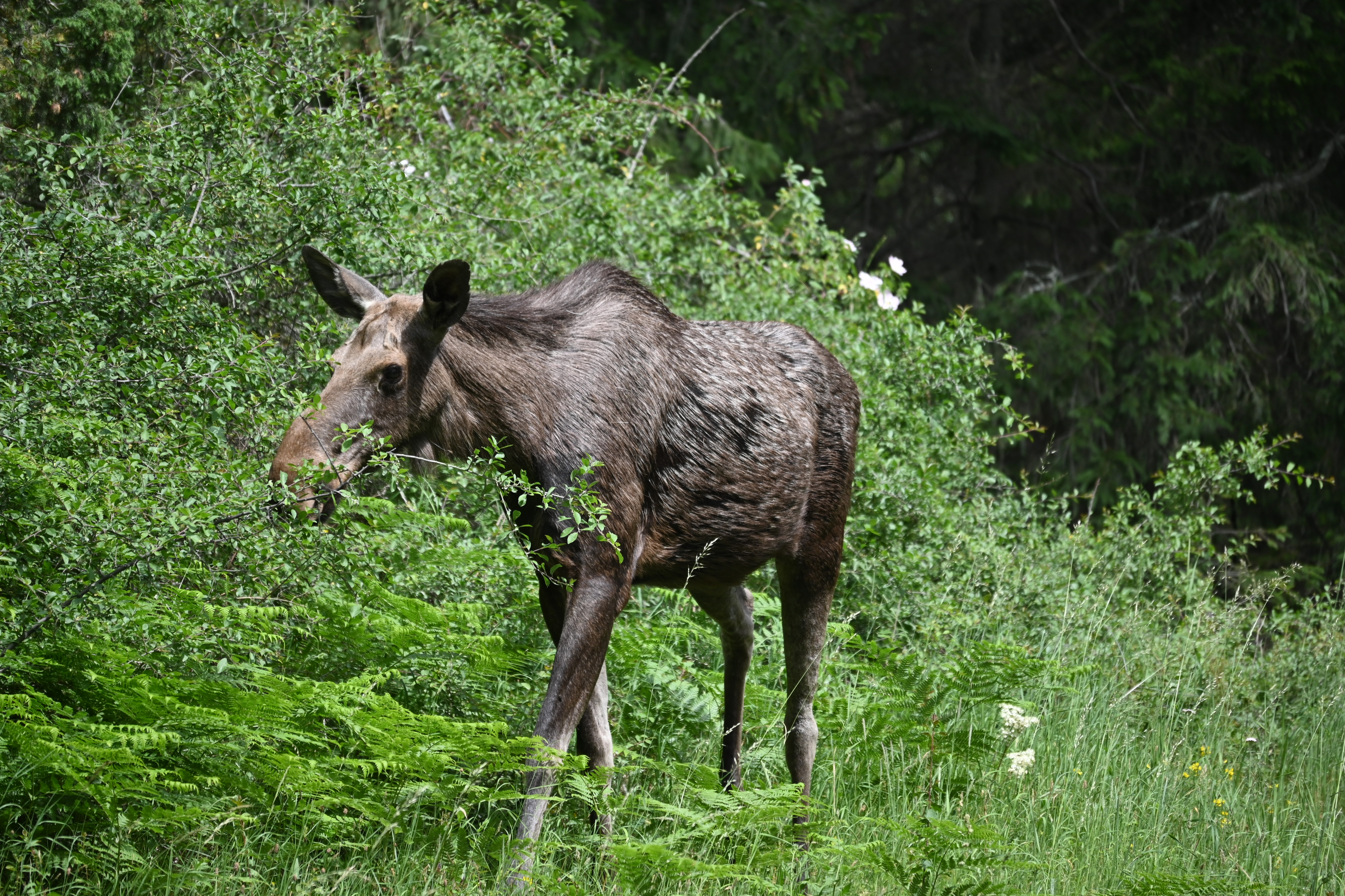 Auf einer Erkundungstour mit dem Fahrrad treffen einen Elch, der am Wegesrand frisst und sich durch nichts stören lässt. Damit können wir „Elk watching“ auf der To-Do-Liste abhaken. Abends gab es Elk-Meatballs im guten und netten „Utö Värdshus“.
