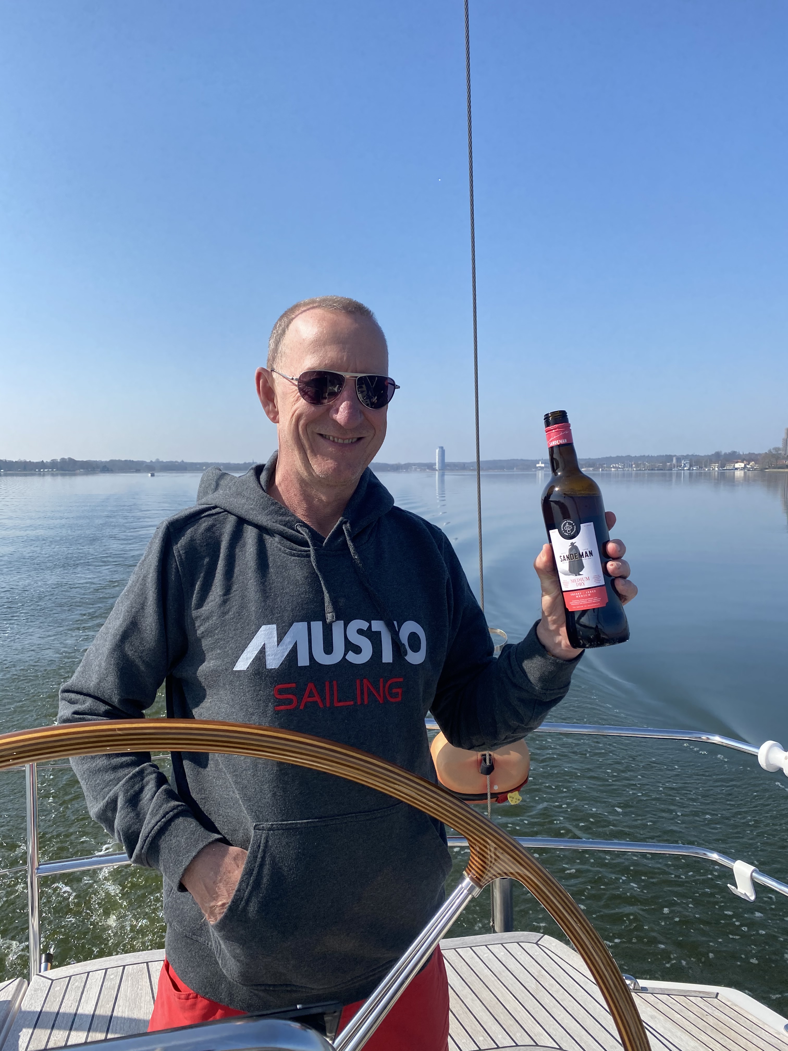 Schon Ende März haben wir die S/Y Andante von der Comfortina-Werft in Schleswig nach Maasholm überführt. Am Anfang der Saison bekommen die Meeresgötter Rasmus und Neptun und Skipper und Crew(Ute?) einen Schluck – Seeleute sind gläubig. Bei uns traditionell einen Schluck Sherry.