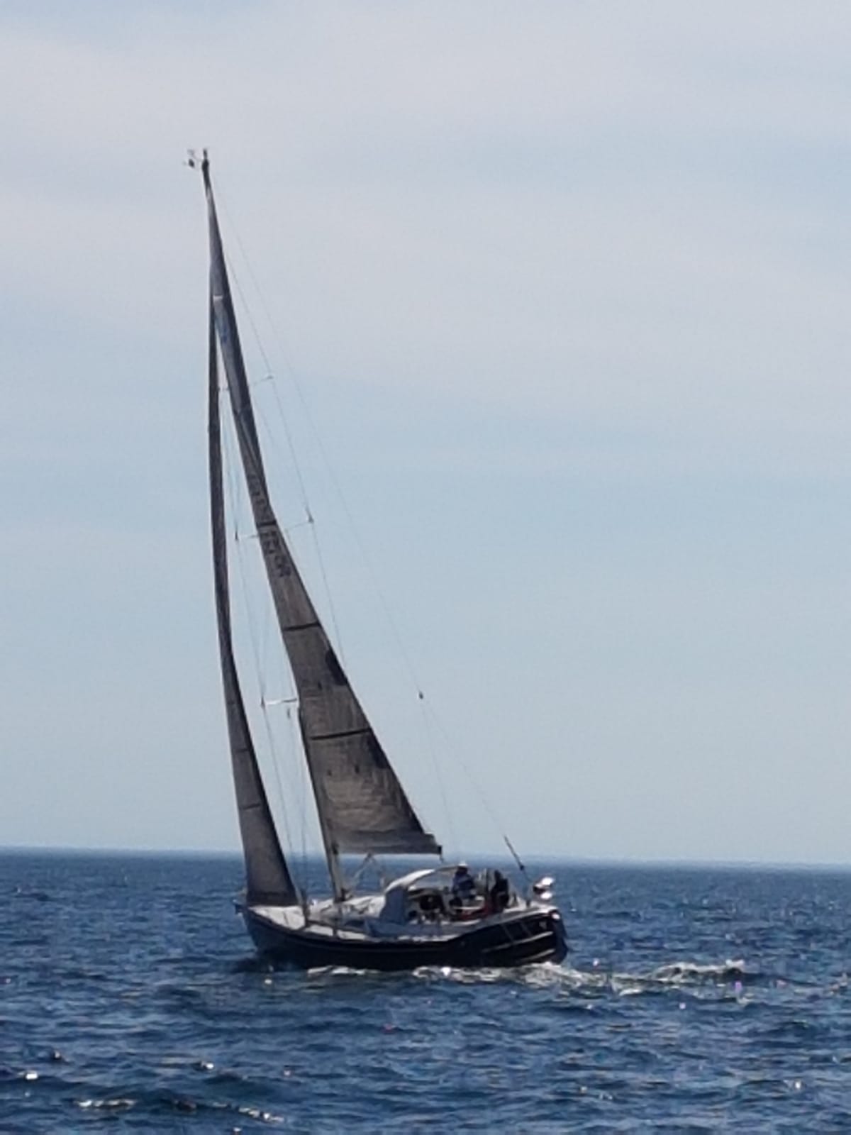 Anfänglich ist es wie angesagt und wir ziehen Spi hoch. Das Manöver geht jetzt schon schneller als die Tage zuvor. Aber so nach einer Stunde wird der Wind weniger und die Welle mehr, dazu kam sie noch von der Seite. Es ist die Welle von vor einigen Stunden, als es stärker aus einer anderen Richtung wehte. Es ist richtig kippelig.
