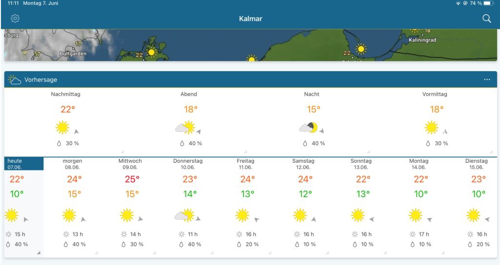 Das schönste ist das Wetter. Wir wissen nicht, wie es bei euch ist, aber für Schweden ist die Voraussage so: