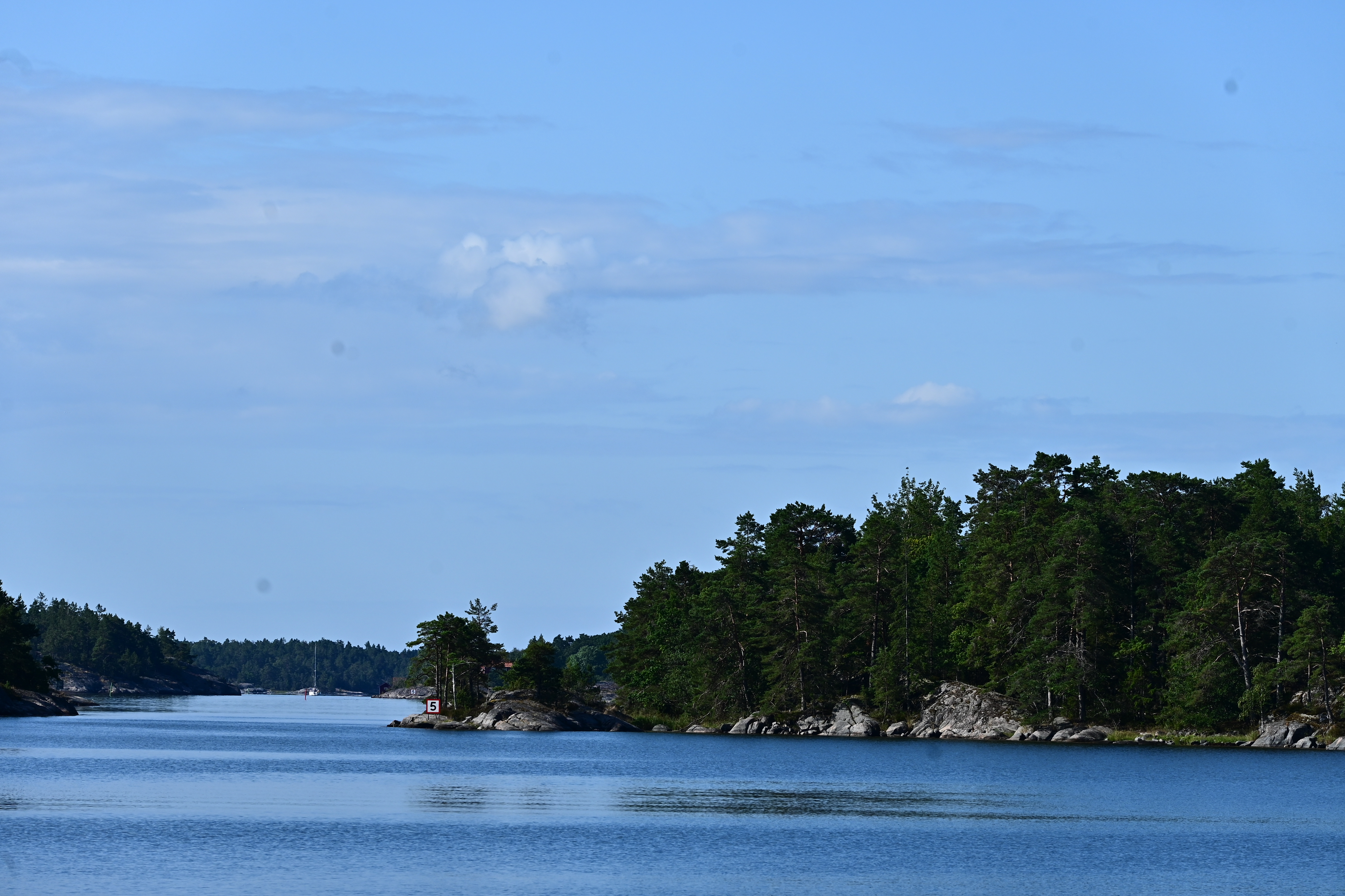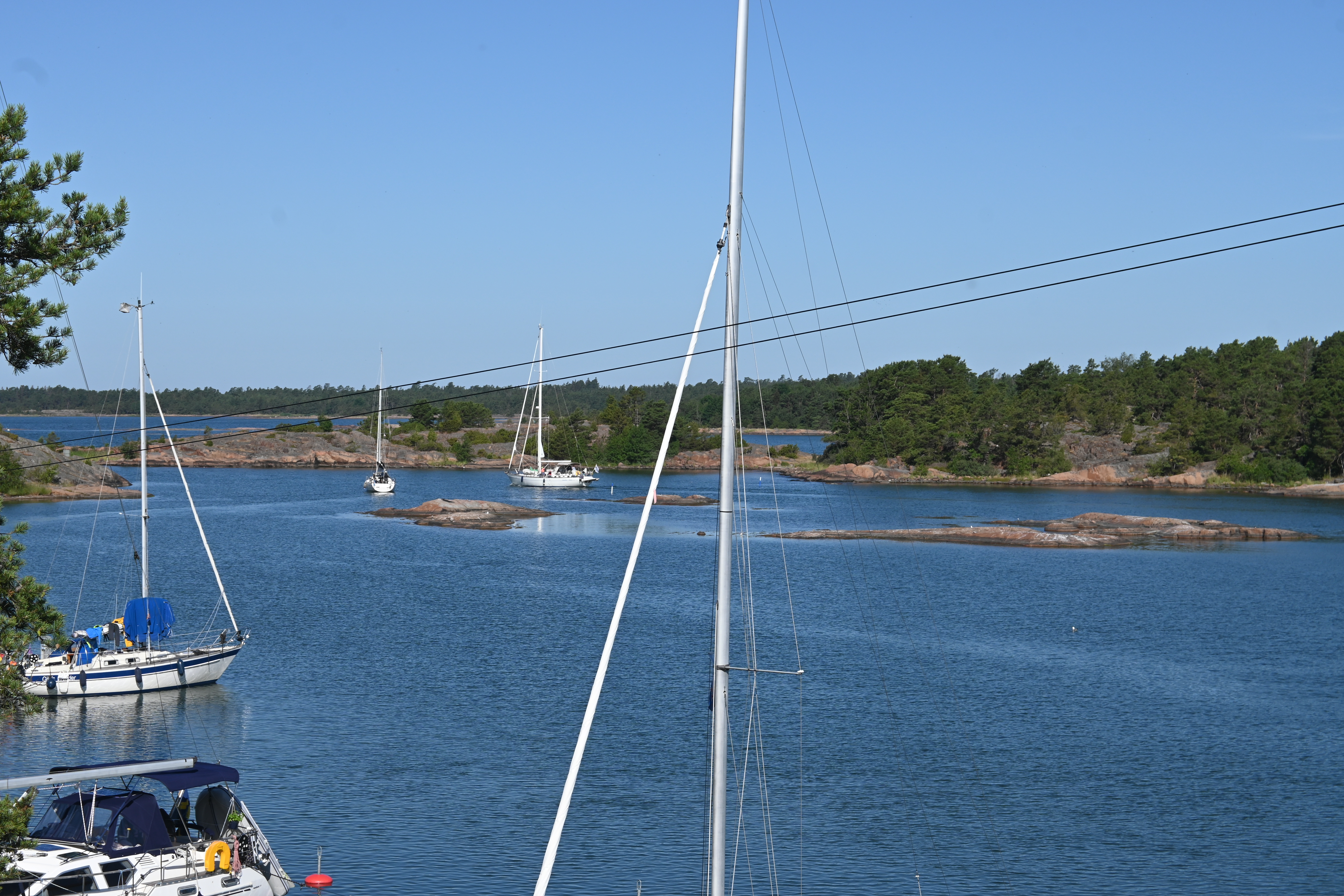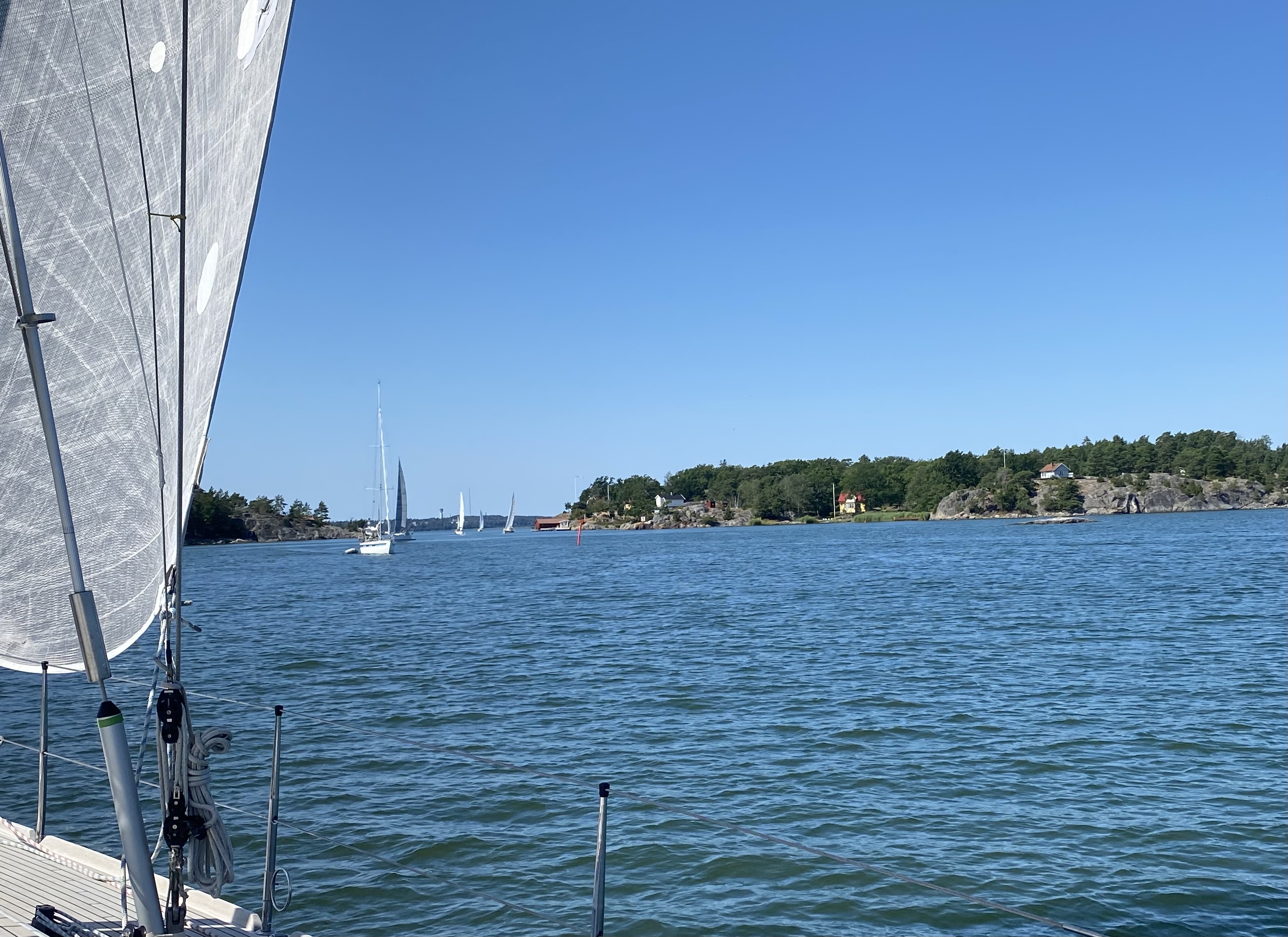 Durch die Schären muss man mit raumen Wind segeln, sonst kann man in den teils engen Stellen nicht manövrieren. Der Wind weht häufig (angeblich zu 75%) aus Süden bzw. Süd-West, folglich sollte man auf dem Weg gen Norden durch die Schären segeln.