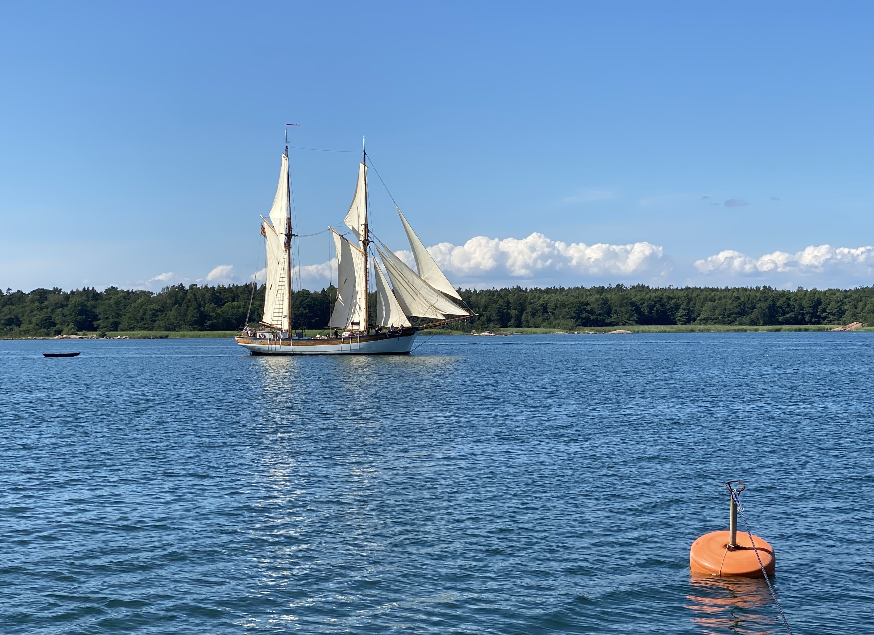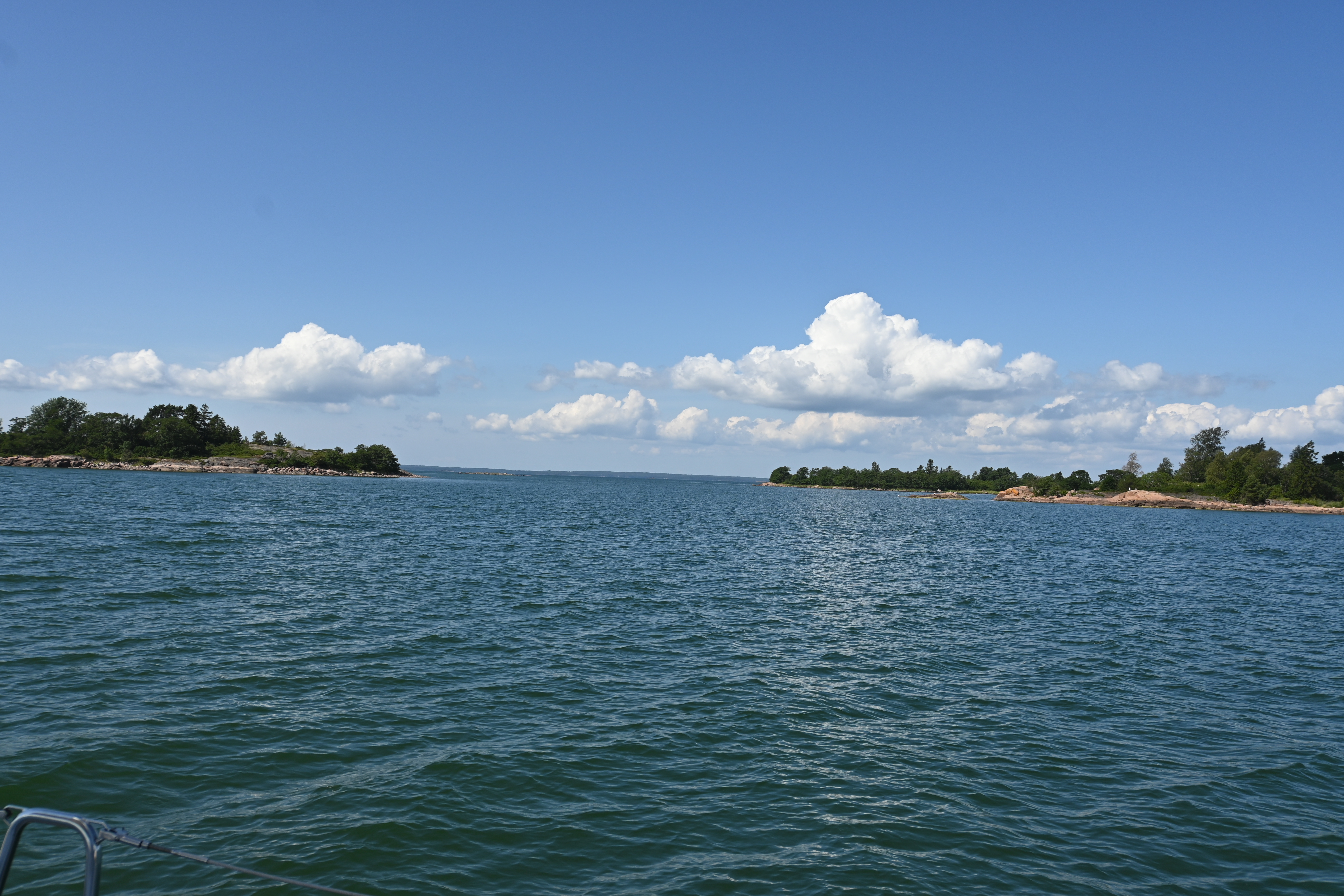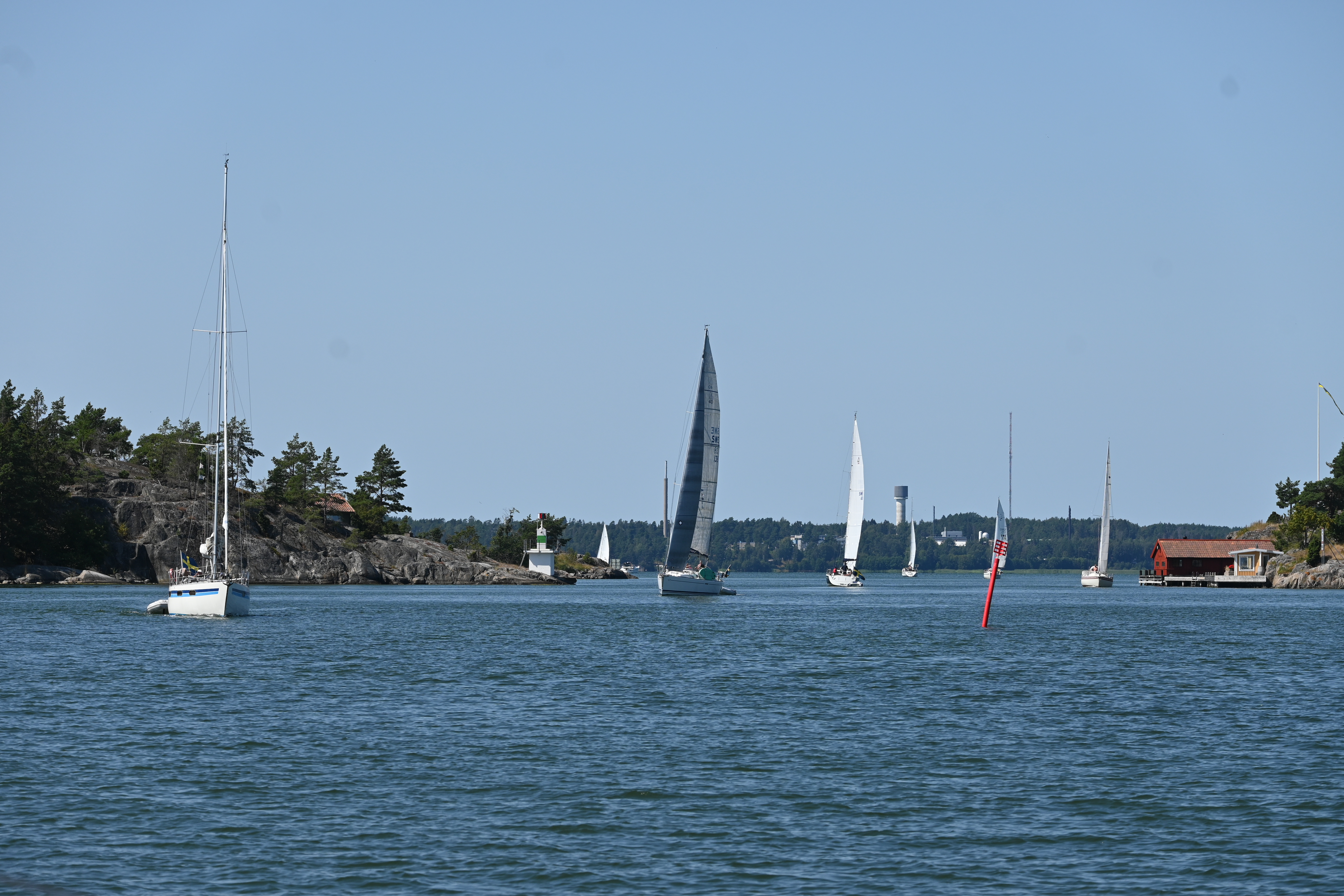 Durch die Schären muss man mit raumen Wind segeln, sonst kann man in den teils engen Stellen nicht manövrieren. Der Wind weht häufig (angeblich zu 75%) aus Süden bzw. Süd-West, folglich sollte man auf dem Weg gen Norden durch die Schären segeln.
