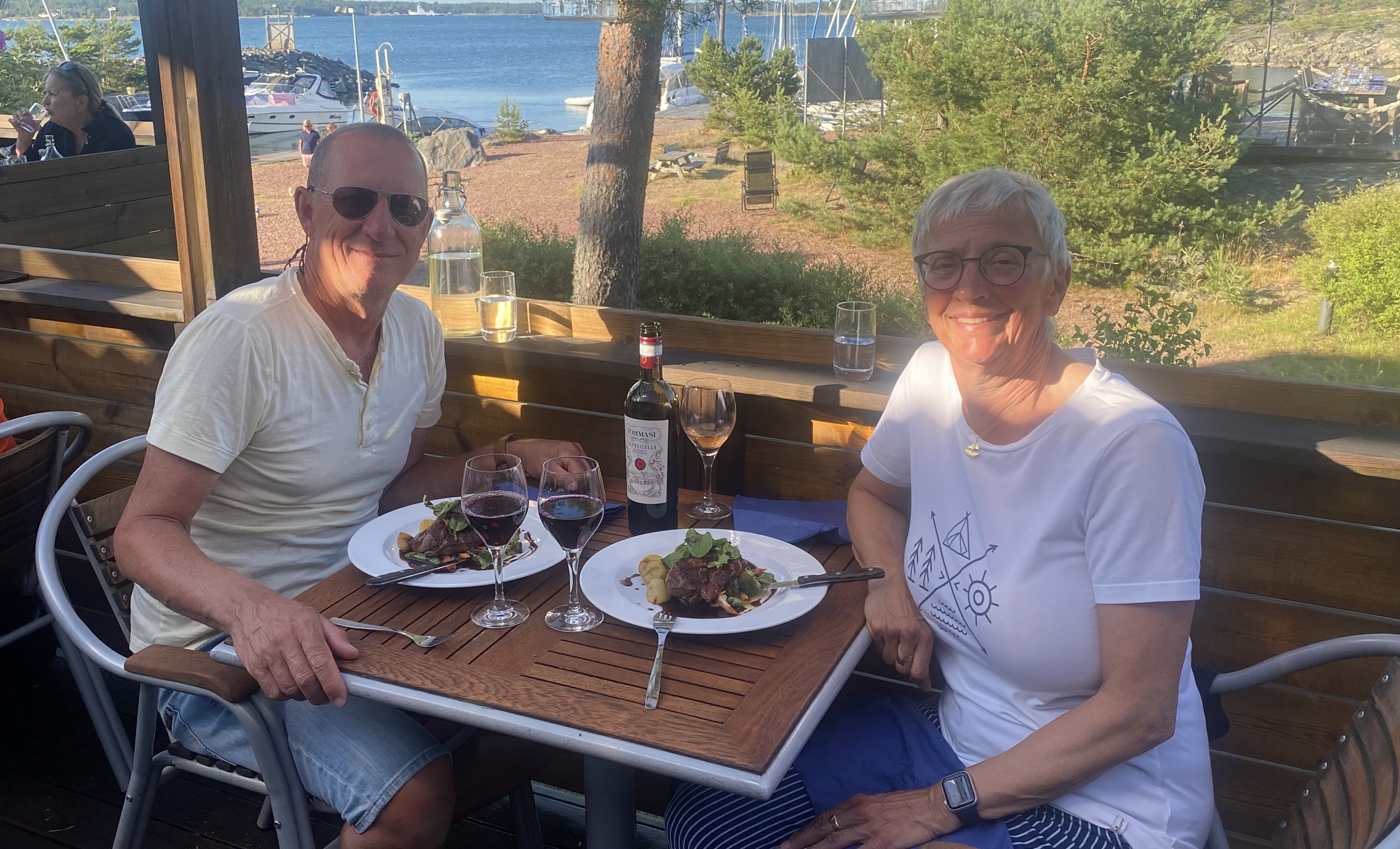 Wir sind noch nie so viel während eines Segeltörns essen gegangen. Einerseits nimmt die Qualität der Restaurants zu je näher man an Stockholm kommt. Anderseits gewöhnen wir uns an die Schwedische Küche und haben sogar mehrmals Toast Skagen genossen. Teuer ist immer der Alkohol, bei uns Wein, ansonsten sind die Preise auf dem Norddeutschen Niveau. Auf den Alands ist alles teurer und man kann die Preise nicht mehr durch 10 teilen, schade.