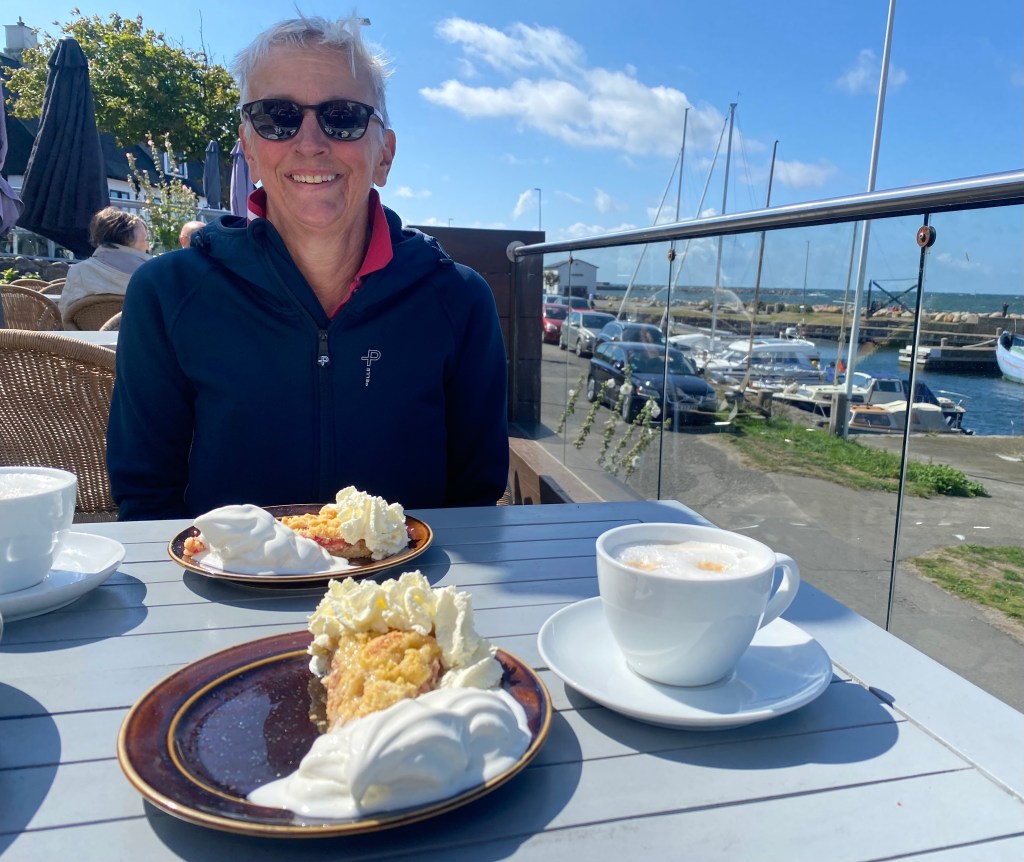 Am nächsten Tag hat Marcus hat eine langes Online Meeting und sitzt unter Deck. Ute macht einen Fahrradausflug in die Umgebung und landet im Trollskogen, einem Naturschutzgebiet am nördlichen Ende der Insel und am Ende im sehr netten „Göthlins Café“ ein Kanelbullar mit Cappuccino.