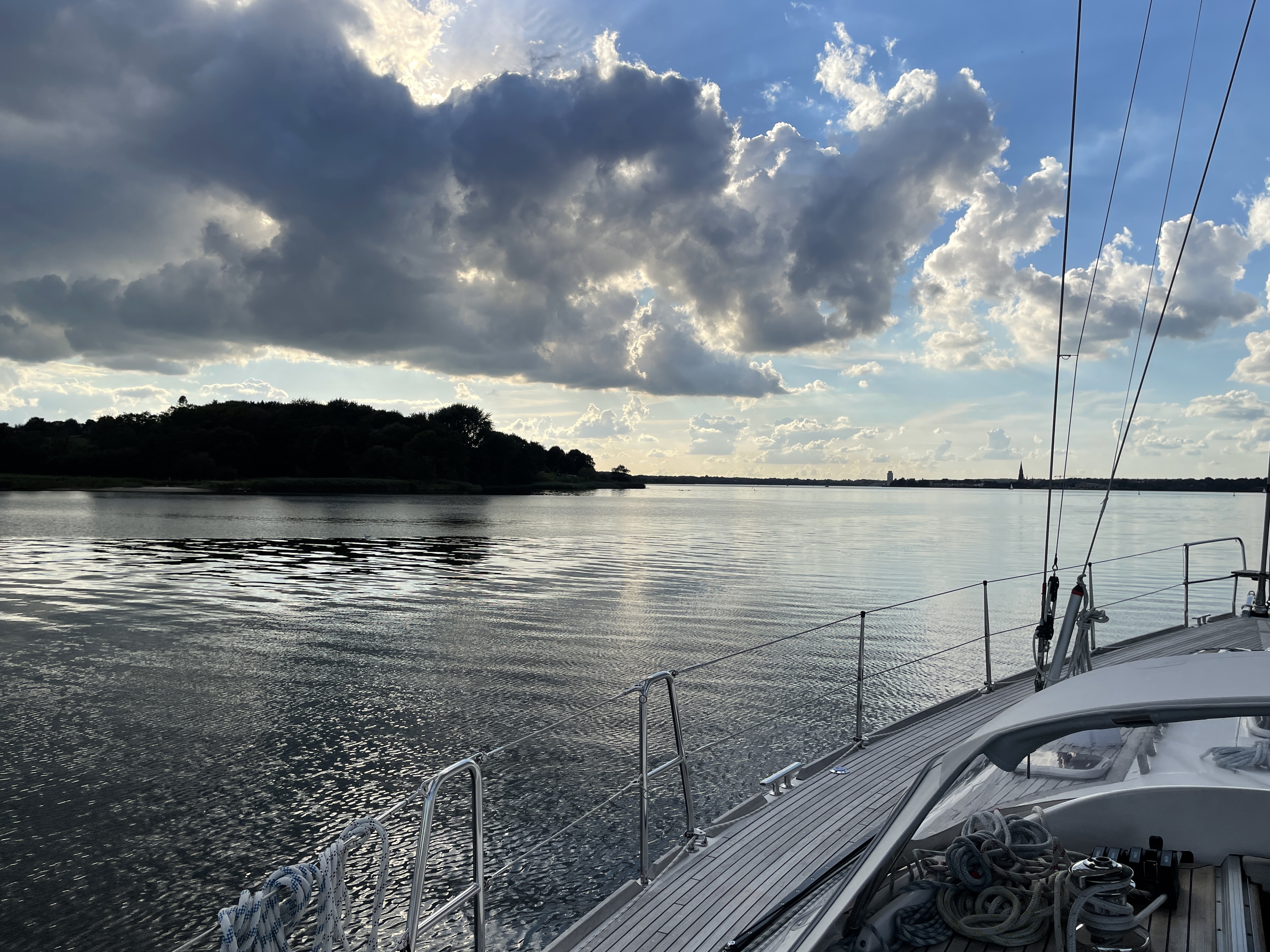 Außerdem sagt Ute „wir sind übersegelt“, die Luft ist raus nach über 100 Tagen auf dem Schiff und über 1.500 SM. Also nutzen wir Dienstag und Mittwoch (28./29.09.). um die SY Andante von Maasholm nach Schleswig zu überführen. Es sind nur 20 SM, aber Wind von vorn. Nur die letzten 5 SM über die Große Breite vor Schleswig können wir segeln.